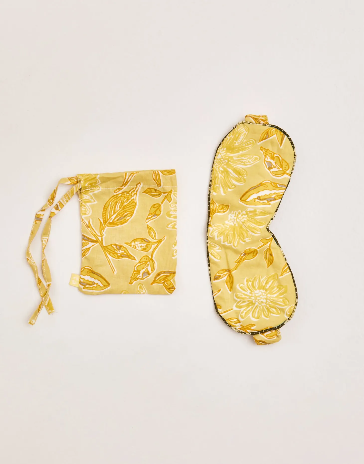 Antifaz con estampado reversible y cinta elástica. Viene en una bolsita con estampado a juego.