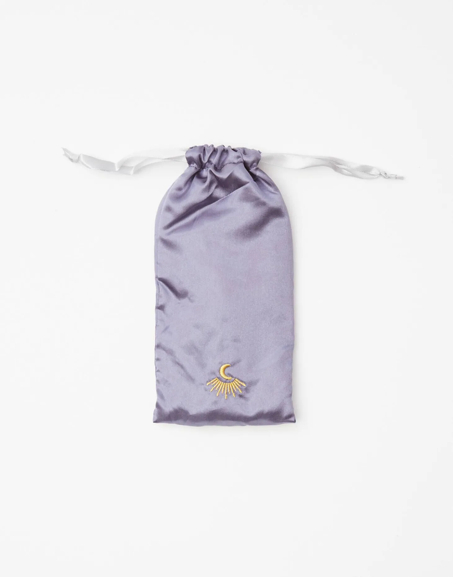 Antifaz acabado en tacto sedoso con cinta elástica. Viene en una bolsita a juego con bordado.