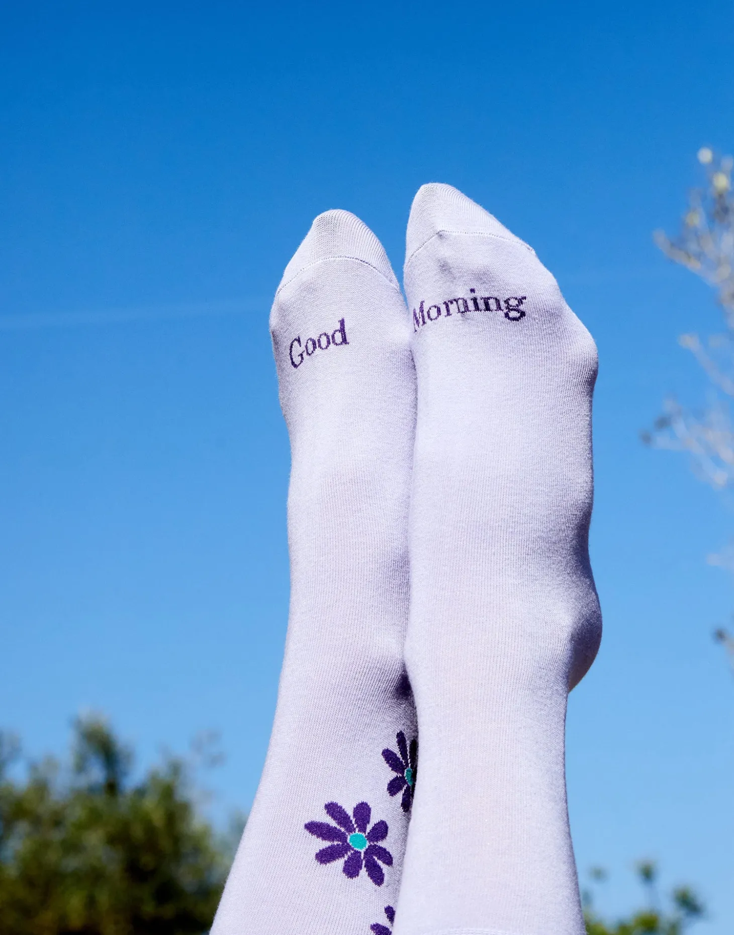 Par de calcetines de color con detalle de margaritas en el lateral.