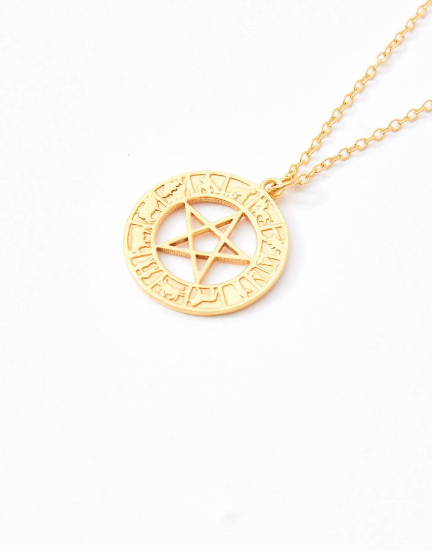 Collar bañado en oro con colgante de medalla. Signos del zodíaco representados en las dos caras de la medalla.