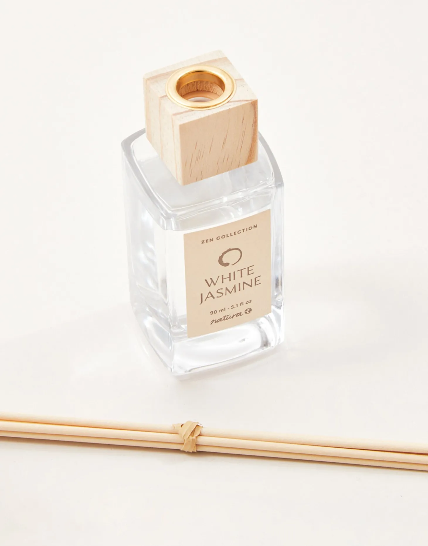 Ambientador de varillas en envase de cristal con varillas de ratán.