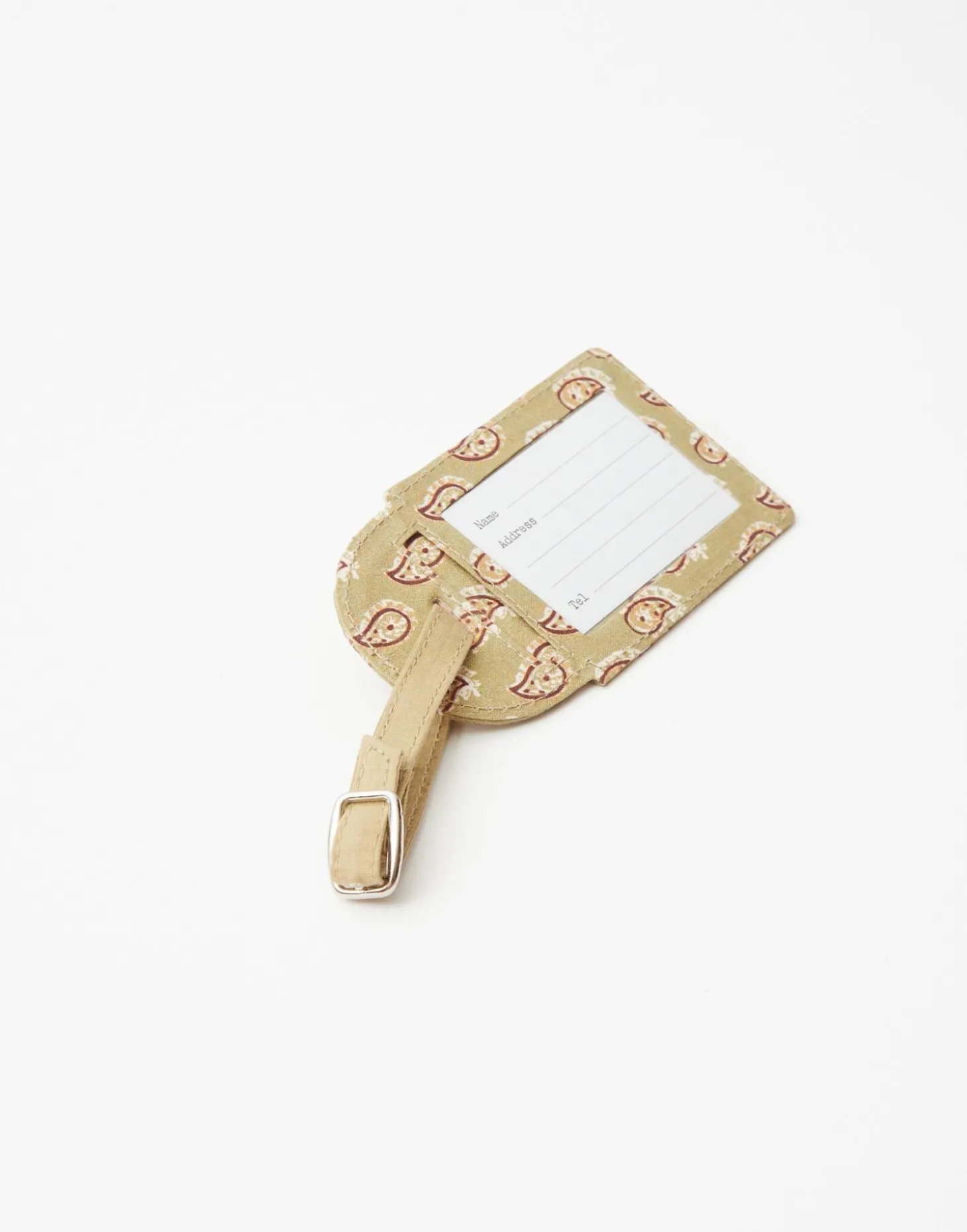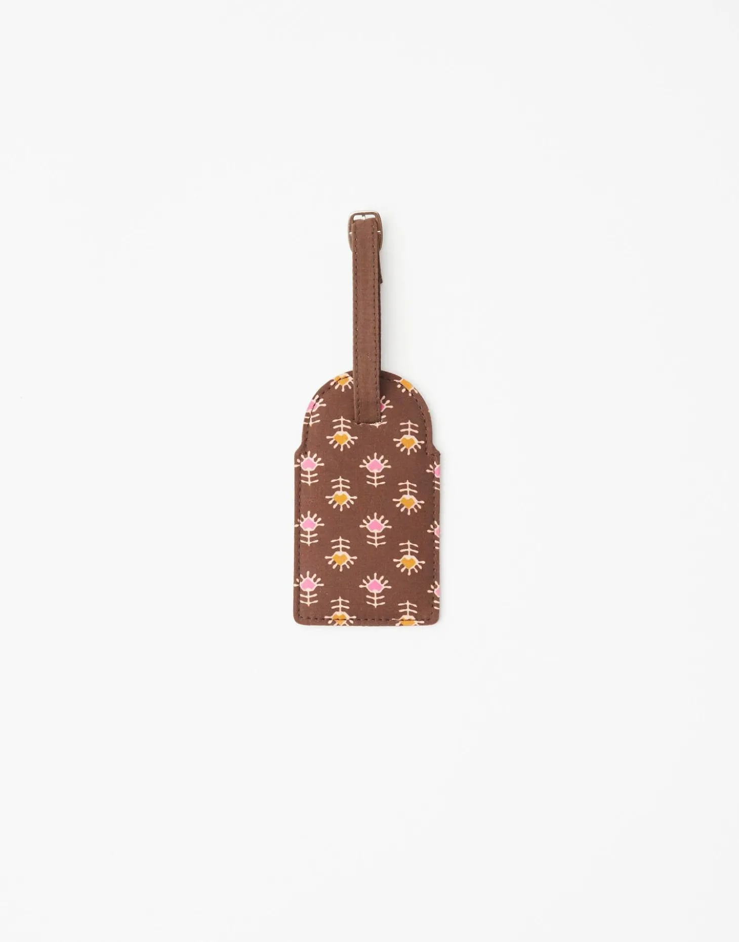 Etiqueta para maleta de algodón con estampado de flores.