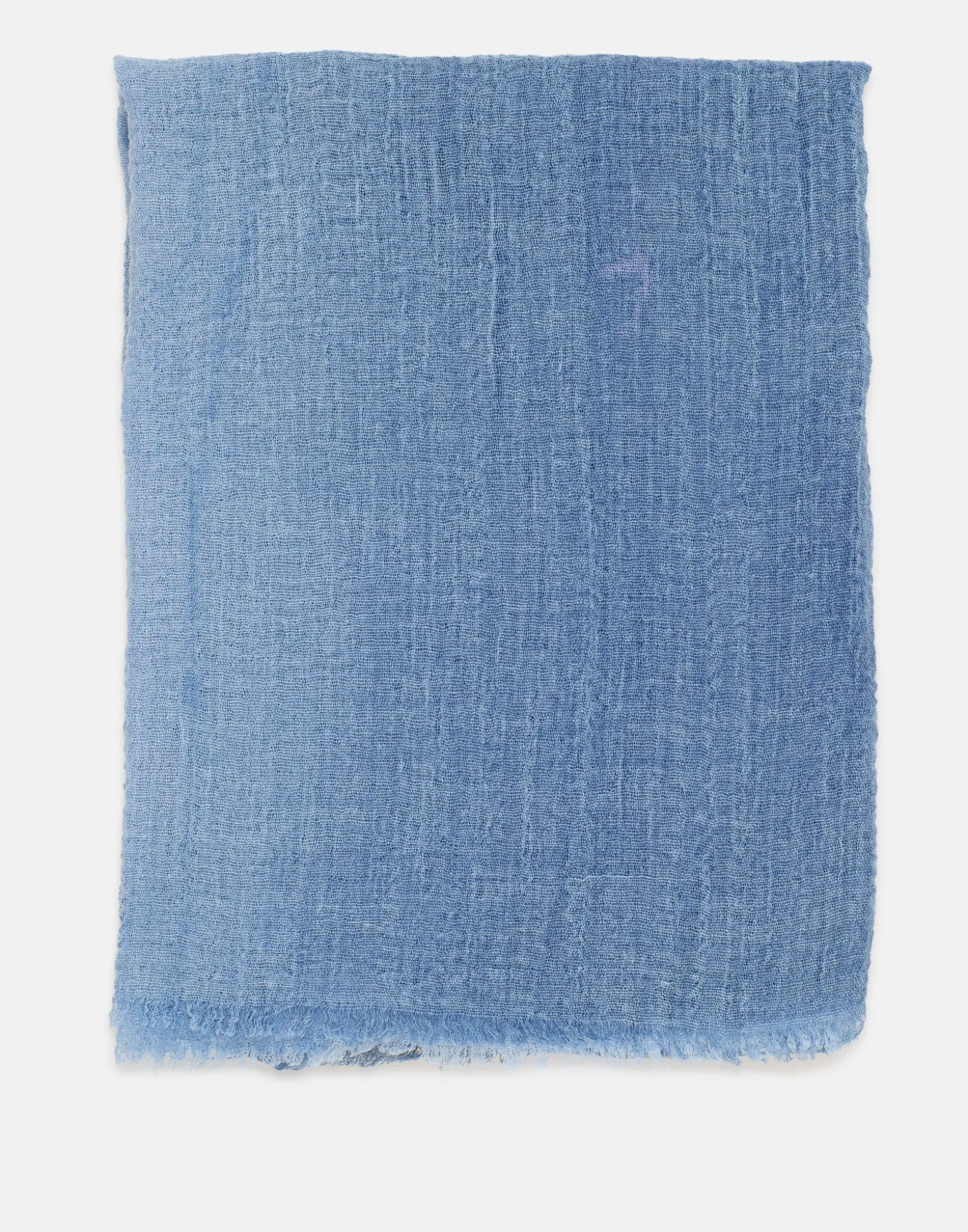 Pañuelo con estampado en degradé y detalle de terminaciones deshilachadas.