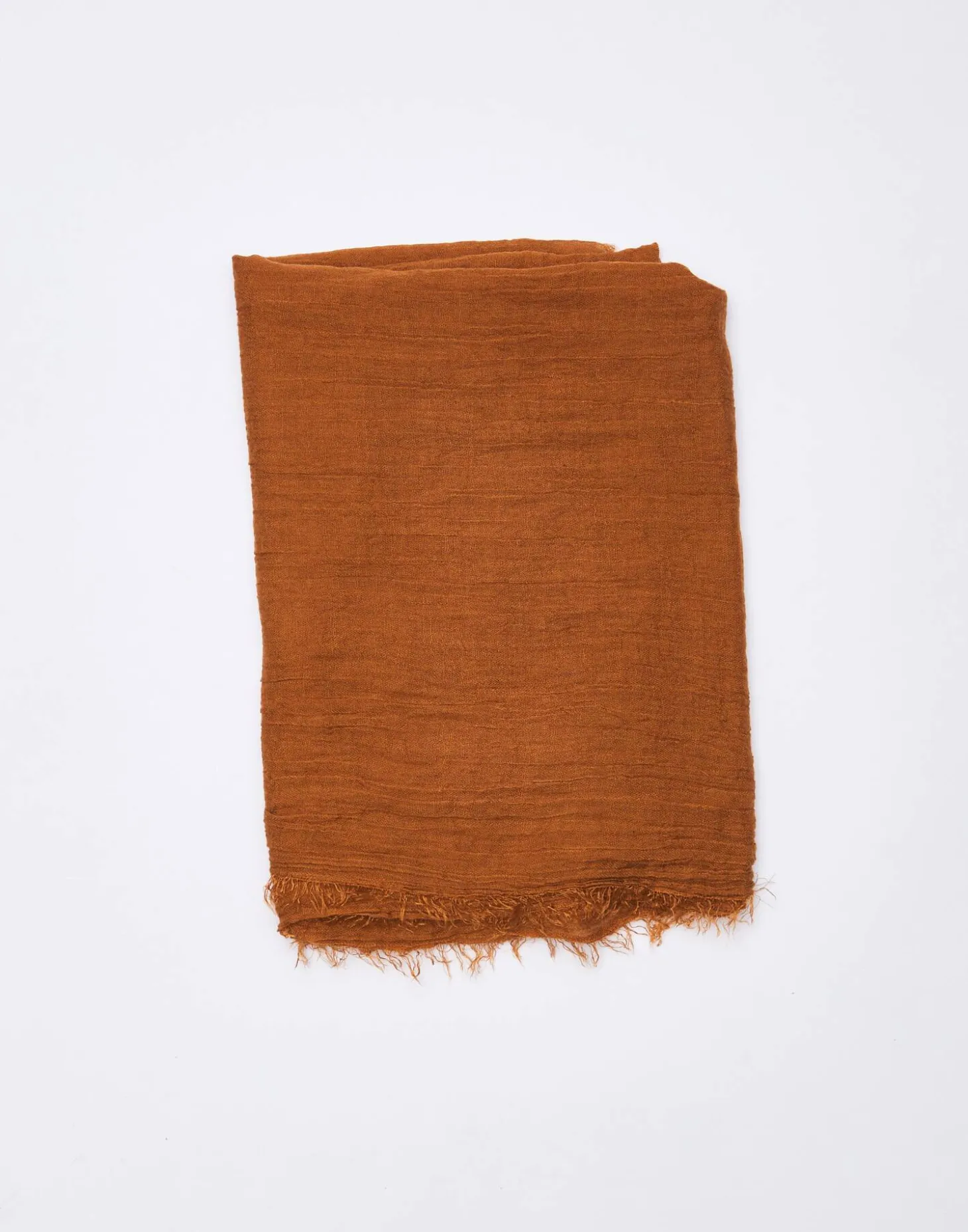Pañuelo liso de tejido suave y terminaciones deshilachadas.