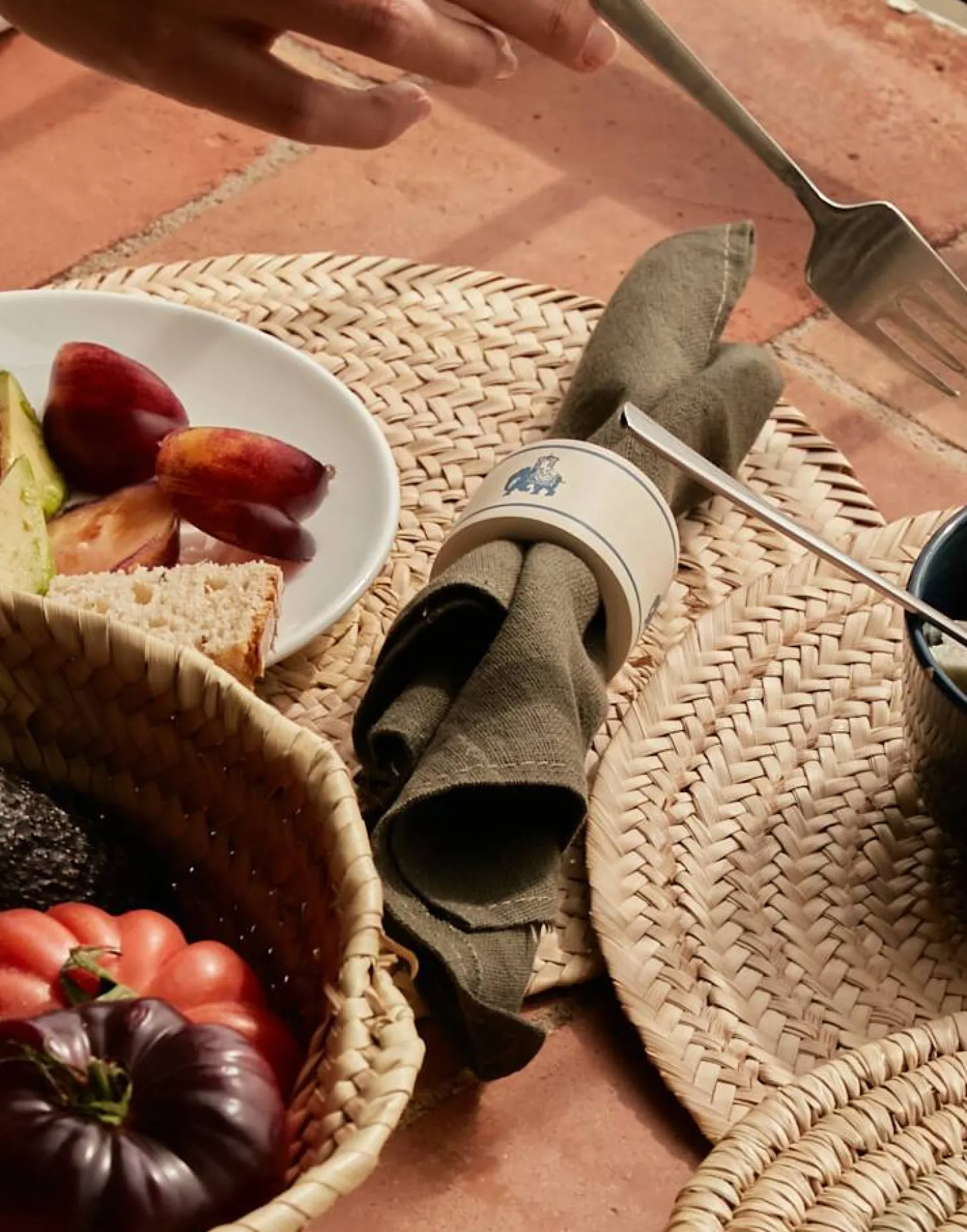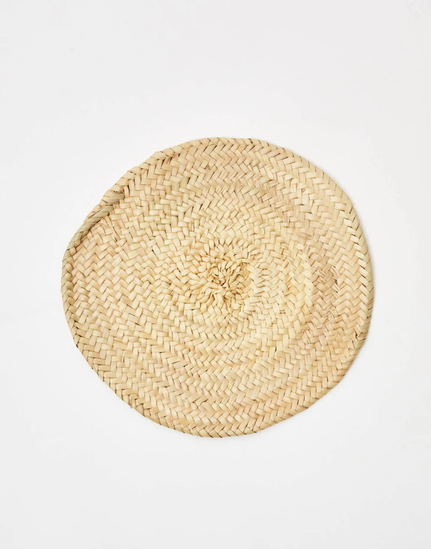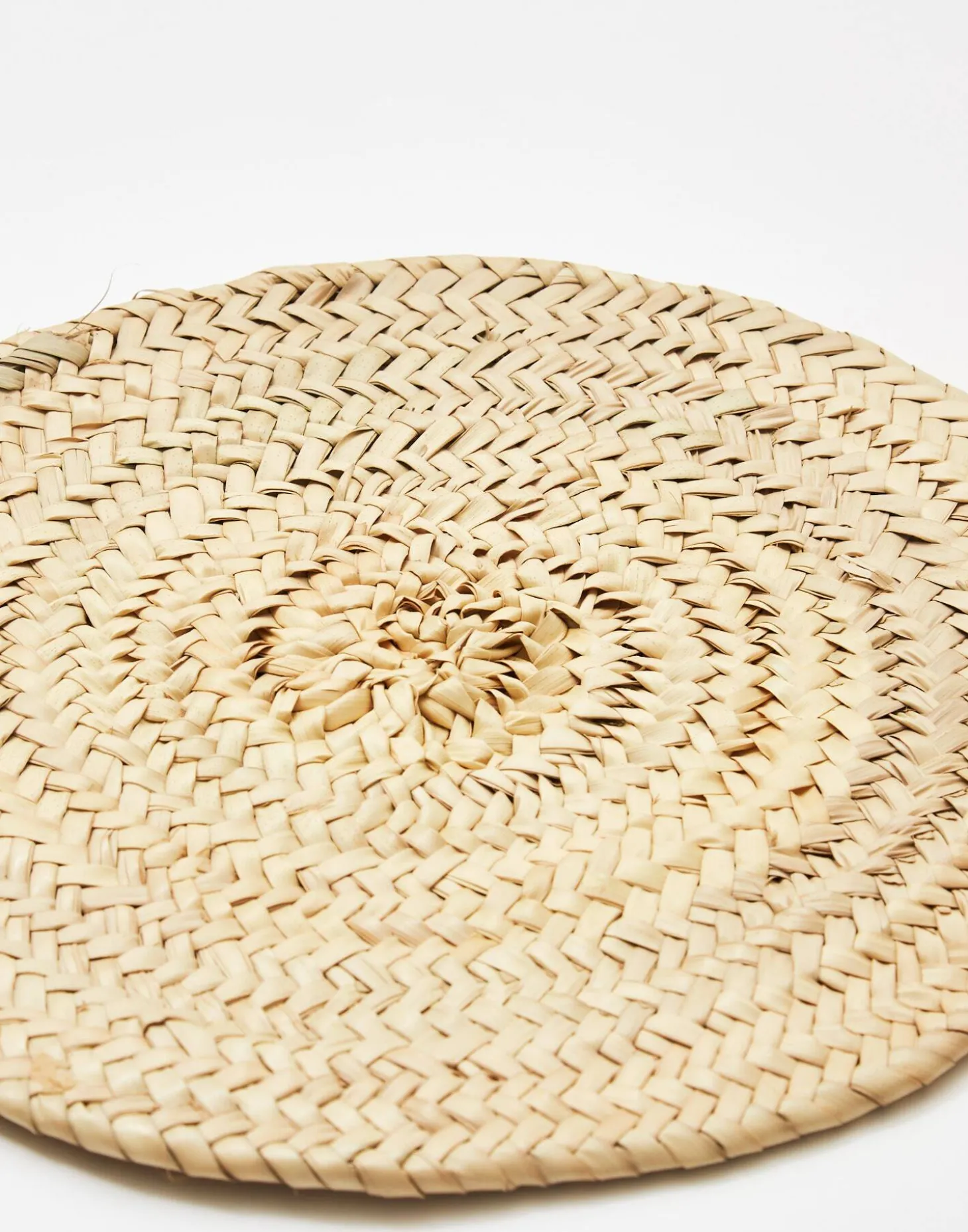 Mantel individual redondo de paja trenzada.