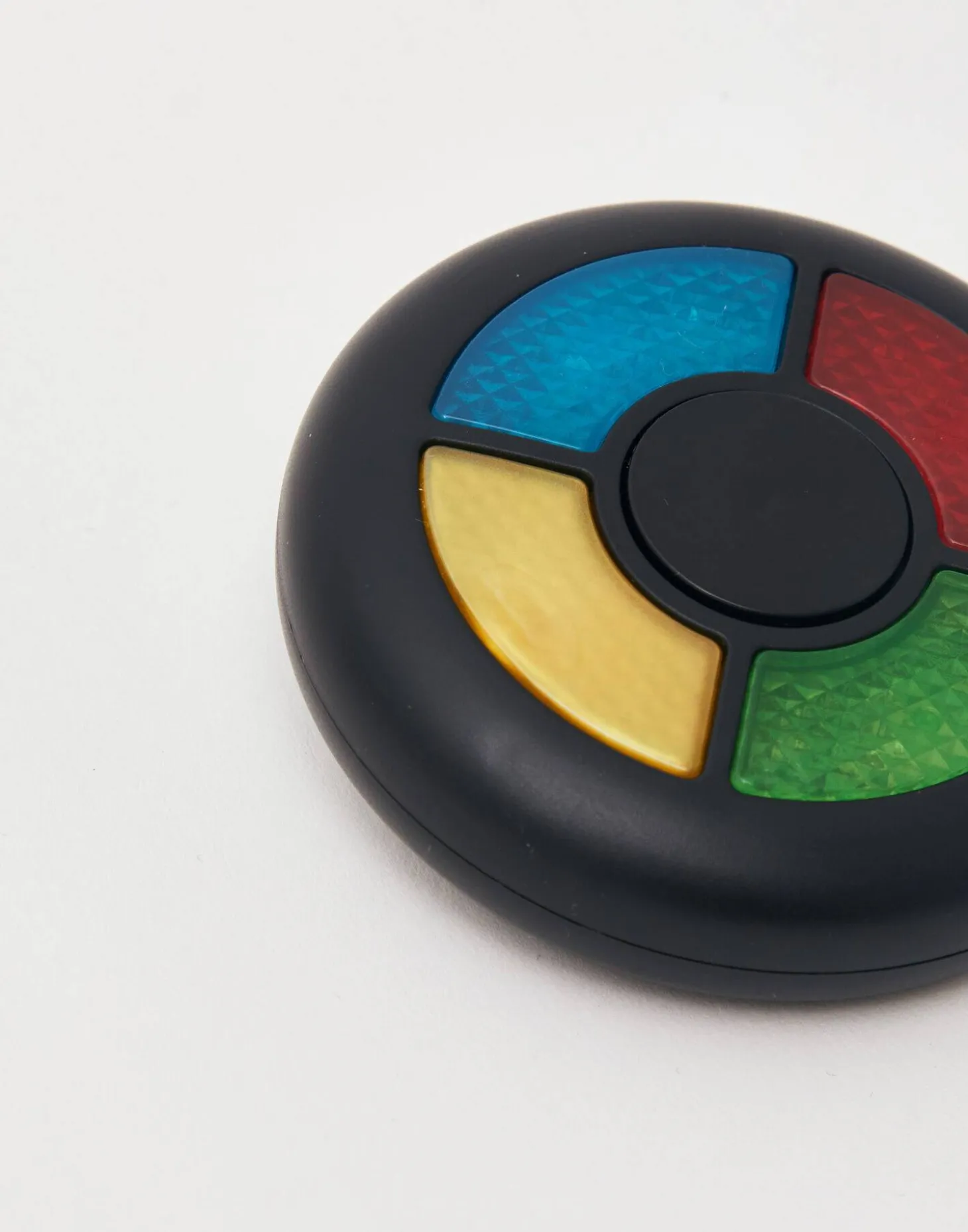 ¡Sigue la frecuencia y pon a prueba tu memoria! Presiona el botón negro para empezar. El dispositivo emitirá una secuencia de luces en orden aleatorio y el jugador deberá reproducir el mismo orden presionando los botones de colores. A medida que el juego progrese, el número de botones a presionar en la secuencia aumentará. El juego termina cuando el jugador presiona un botón incorrecto. No recomendado para menores de 3 años.