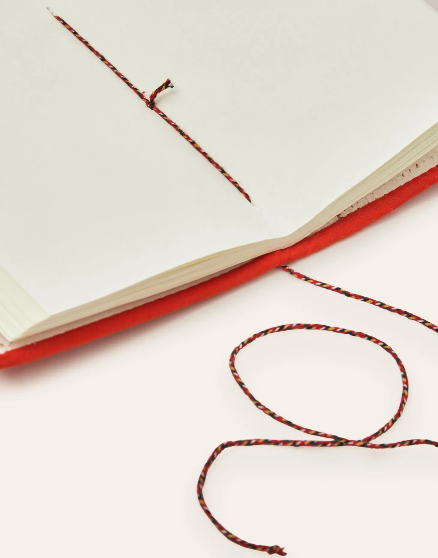 Cuaderno de papel hecho a mano con cierre de cuerda y hojas en blanco.