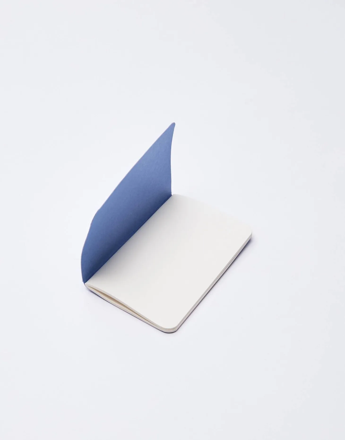 Libreta de formato pequeño con mensaje dorado en la parte frontal y tapa blanda. Páginas lisas.
