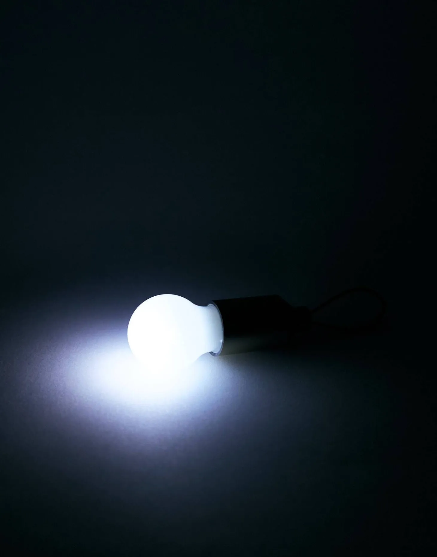 Llavero con luz LED en forma de bombilla. Estirar del cordón para encenderla.