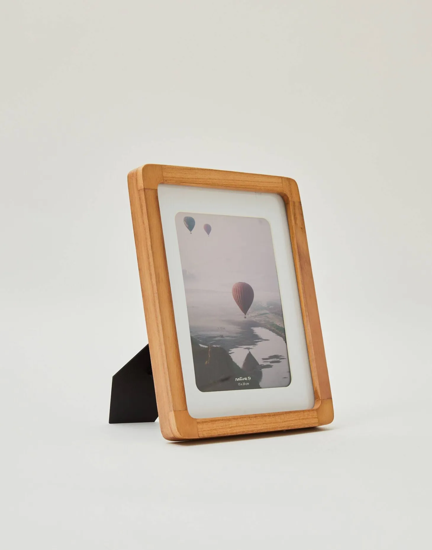 Marco de madera con pie en la parte trasera y passepartout. Para fotos de 15×20 cm.