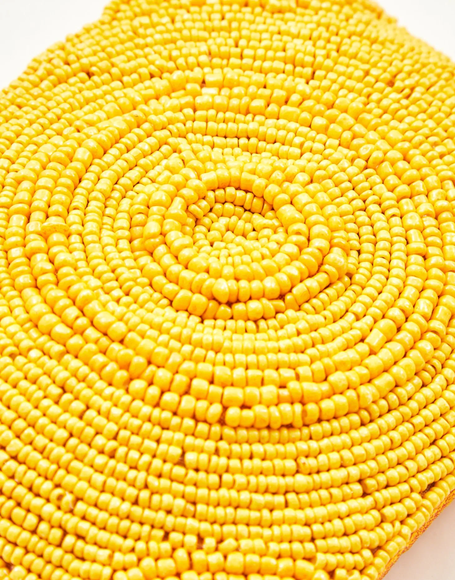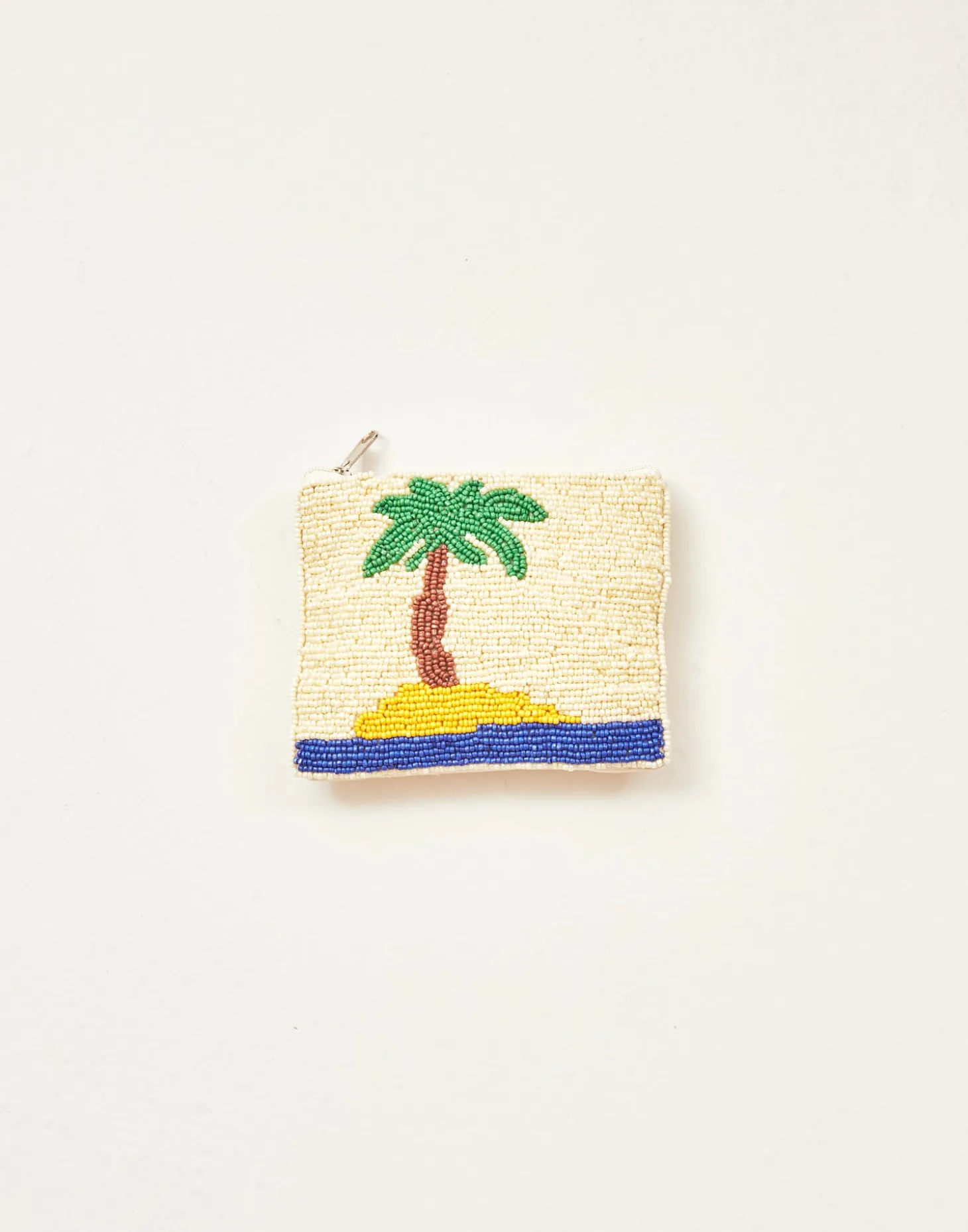 Pequeño neceser portatodo con cierre de cremallera superior. Parte frontal decorada con ilustraciones hechas con cuentas de vidrio.