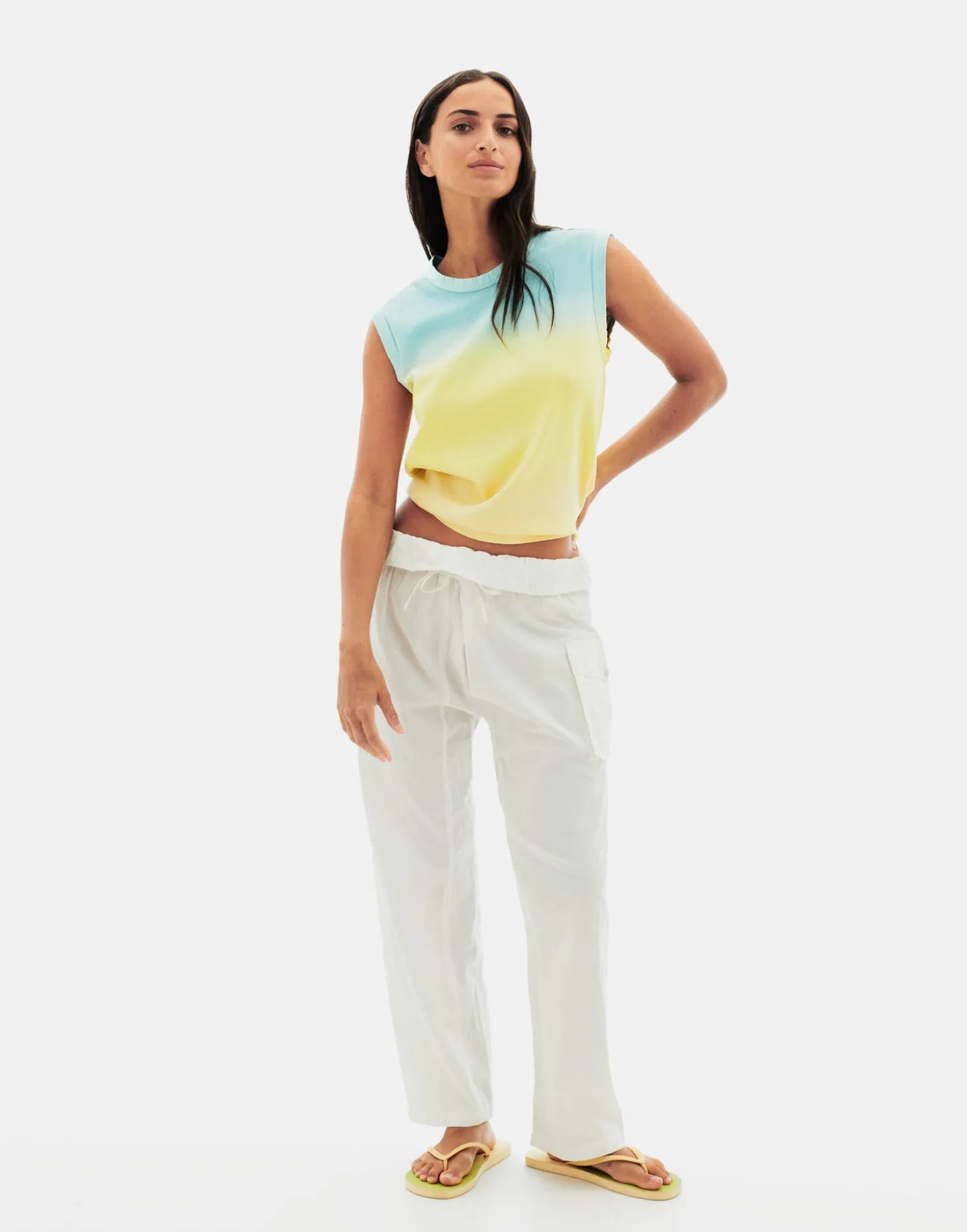 Pantalón cargo de corte relajado, con cintura elástica y bolsillos de plastrón. Inspirados en los pantalones Thai.