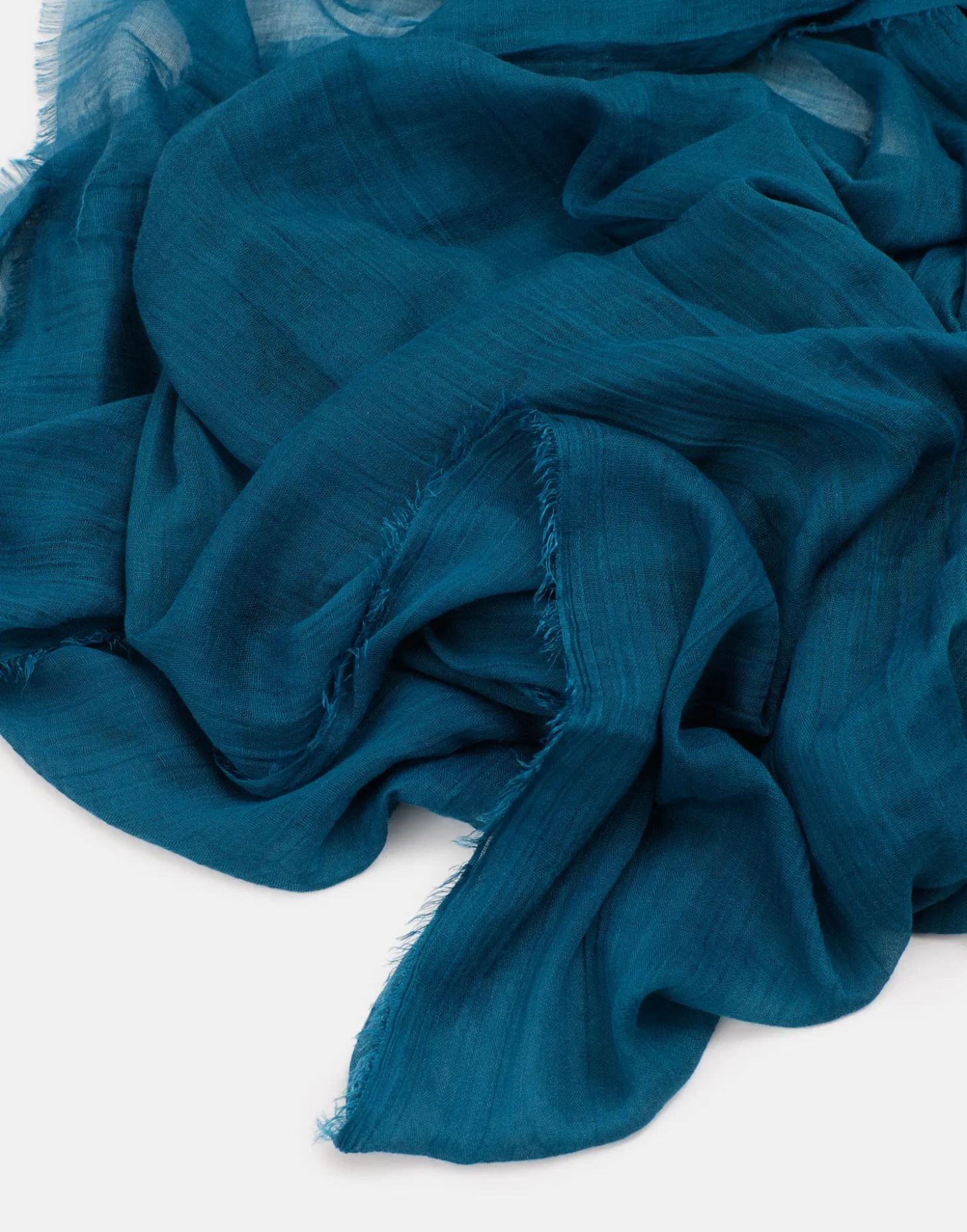 Fular liso con detalle de tejido efecto arrugado y terminaciones deshilachadas.