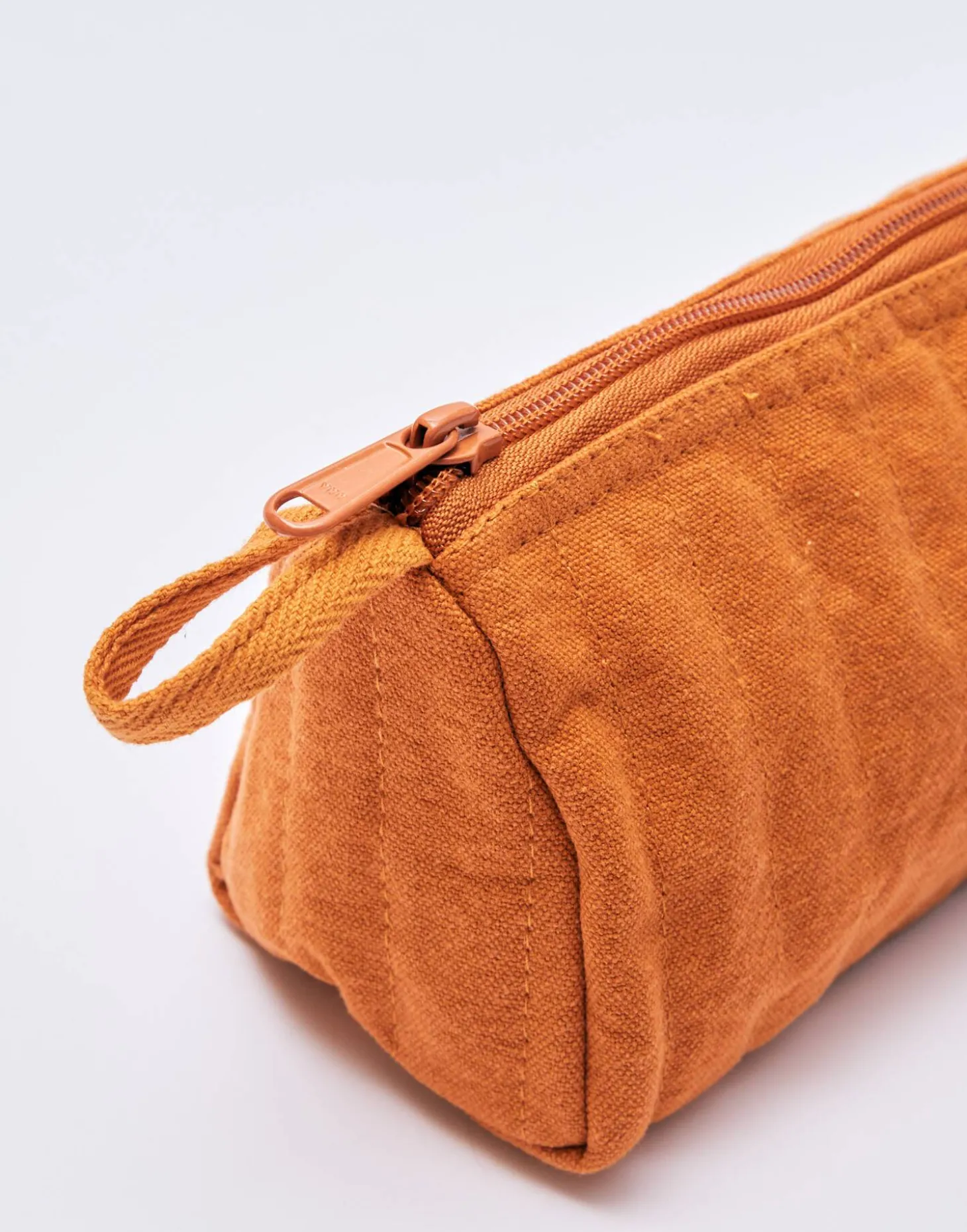 Estuche 100% algodón lavado. Único compartimento con cierre mediante cremallera.