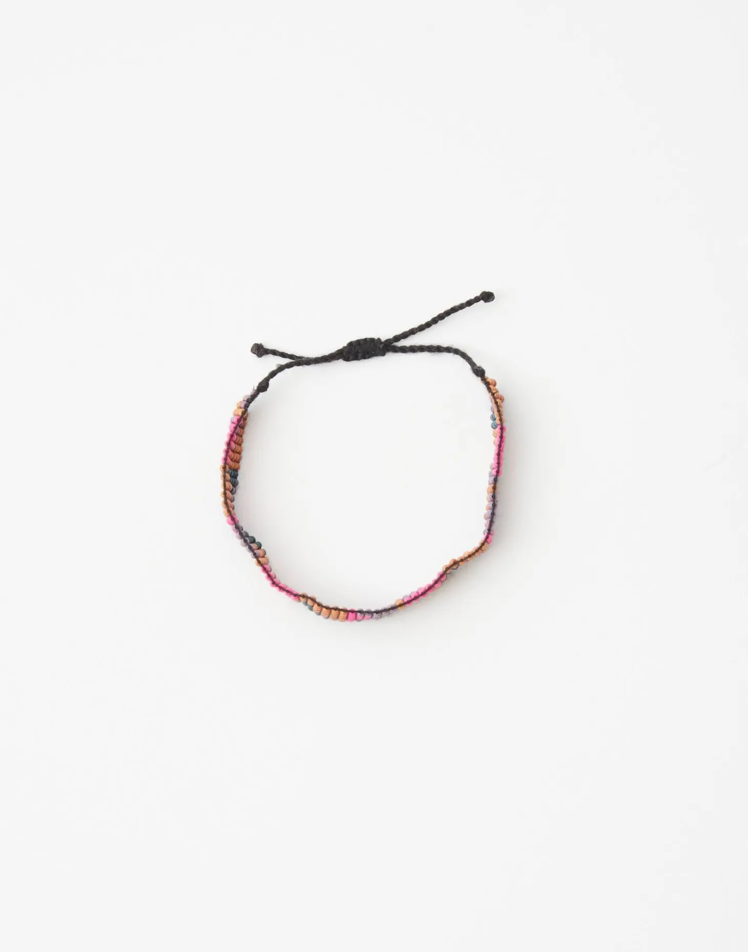 Pulsera ancha con cuentas de colores formando un diseño geométrico. Cierre de nudo corredizo.