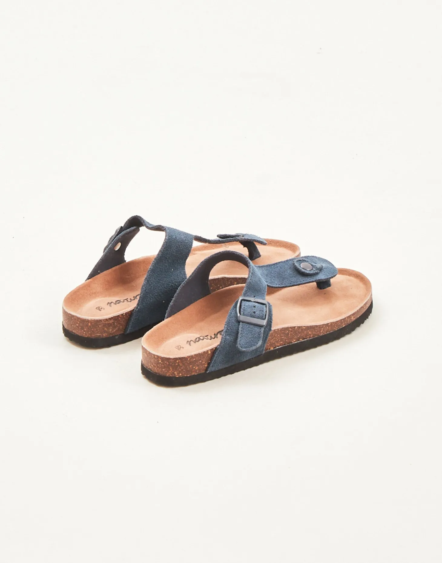 Sandalia de dedo ergonómica de piel. Ancho ajustable mediante hebilla.