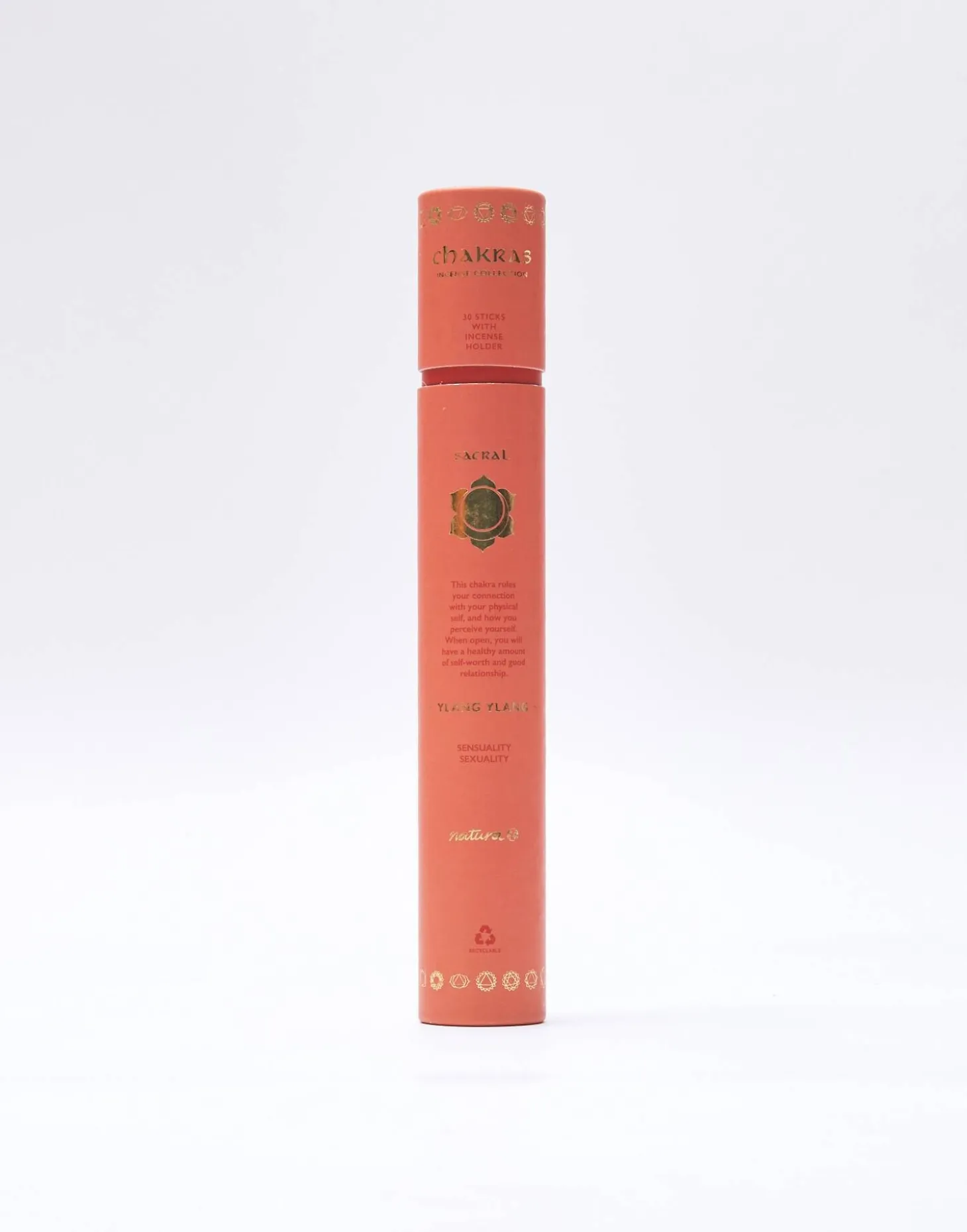 Sacro: ylang ylang (naranja). Este chakra rige tu conexión con tu ser físico y cómo te percibes a ti mismo/a.