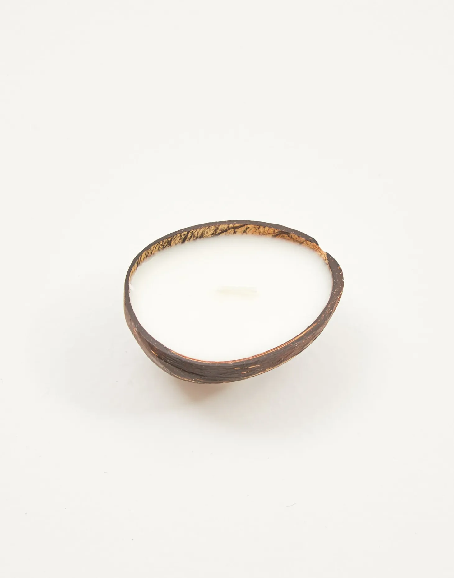 Vela de cera con recipiente de coco natural.