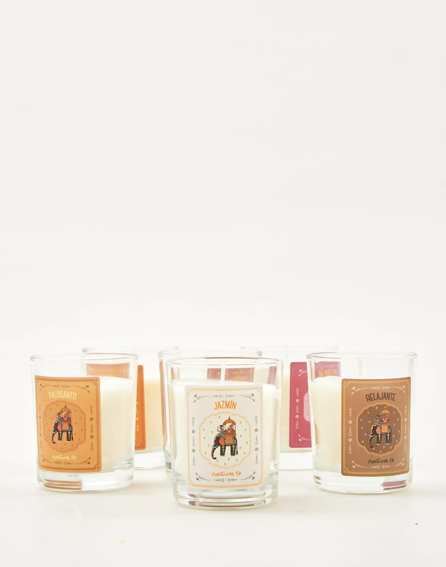 Vela de soja con mecha de algodón y recipiente de cristal. Fabricada en España.