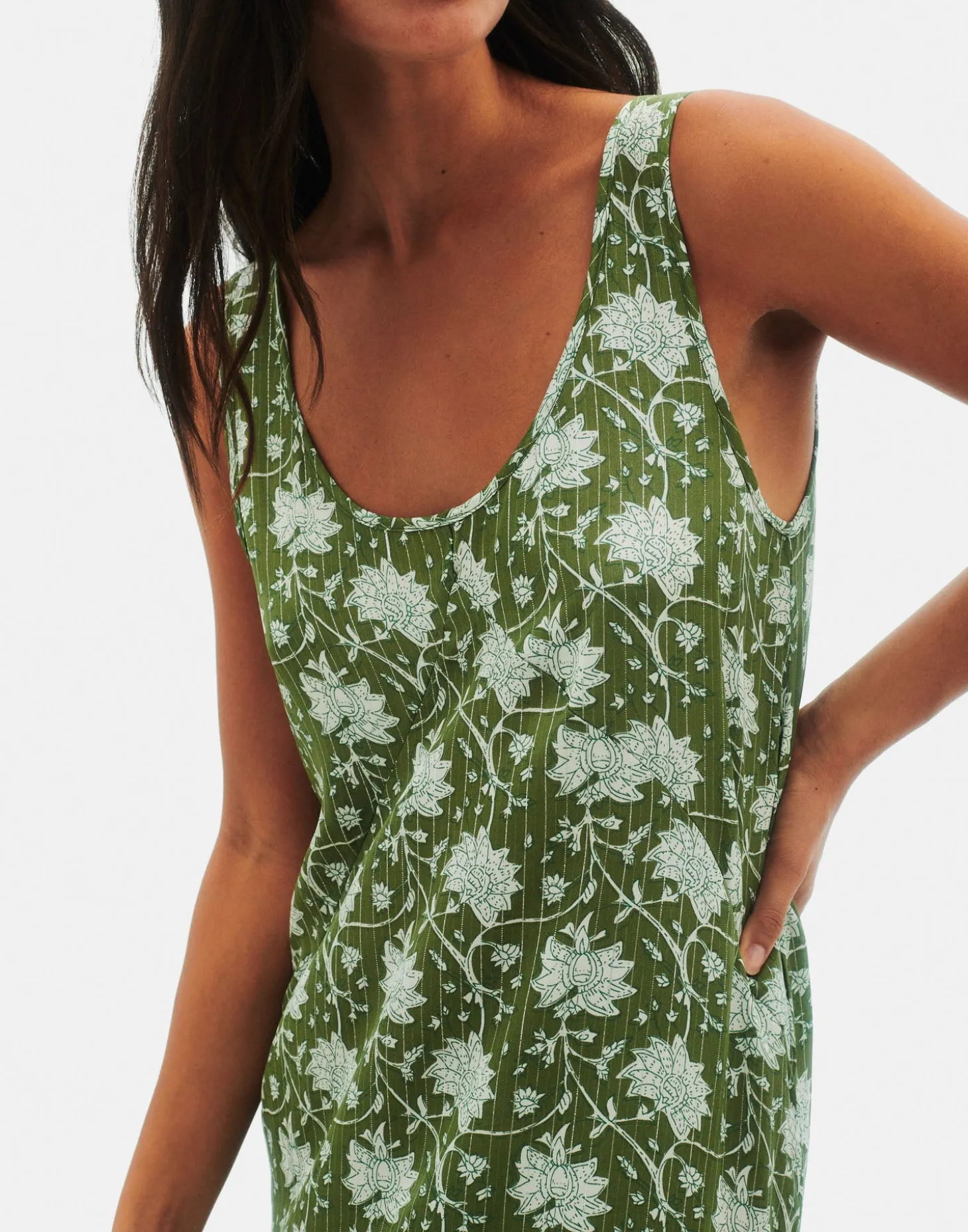 Vestido largo estampado sin mangas. Escote redondo. Tejido en mezcla de seda.
