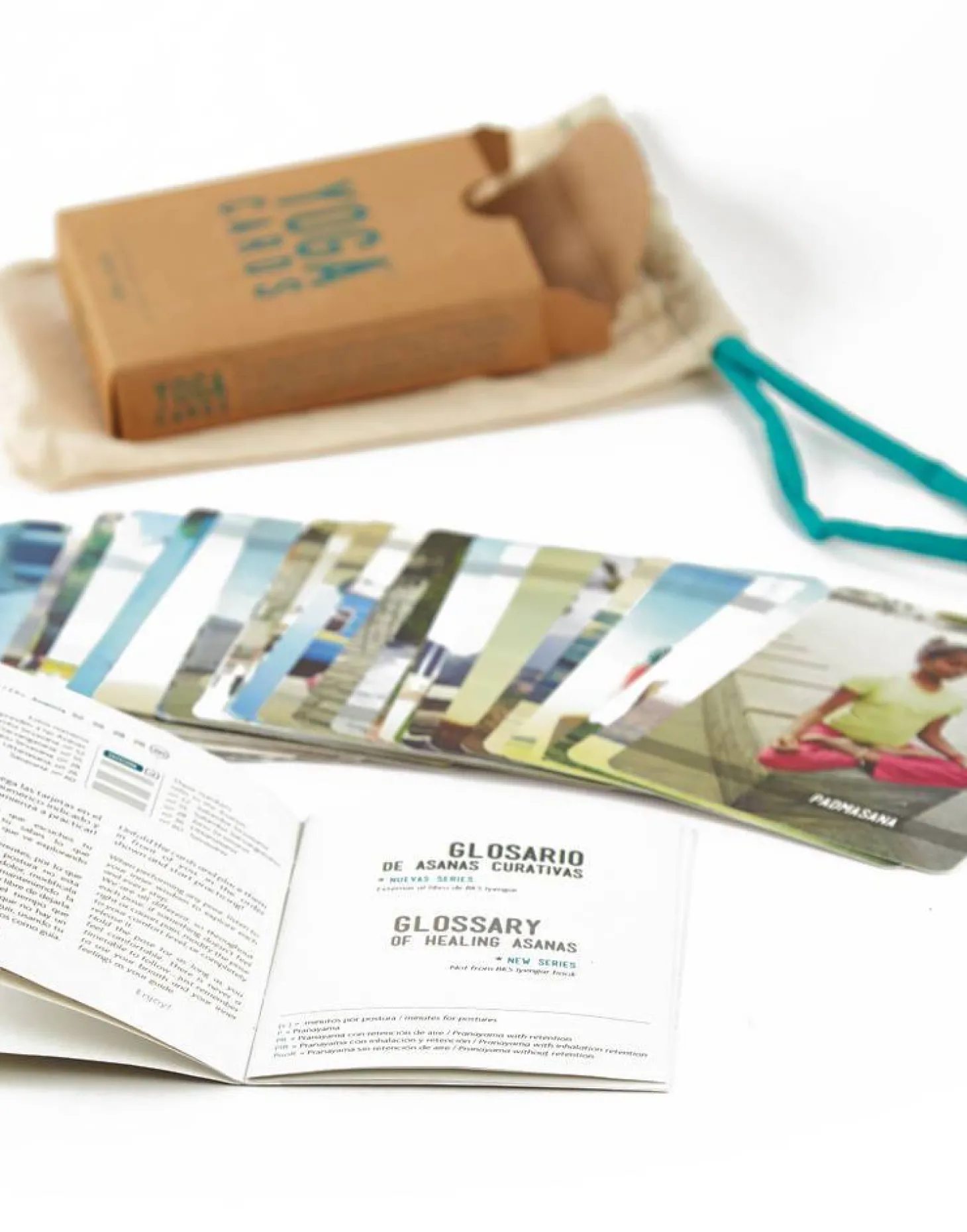 60 tarjetas con Asanas (posturas de yoga), beneficios y contraindicaciones de cada una + Apéndice de Series Curativas.