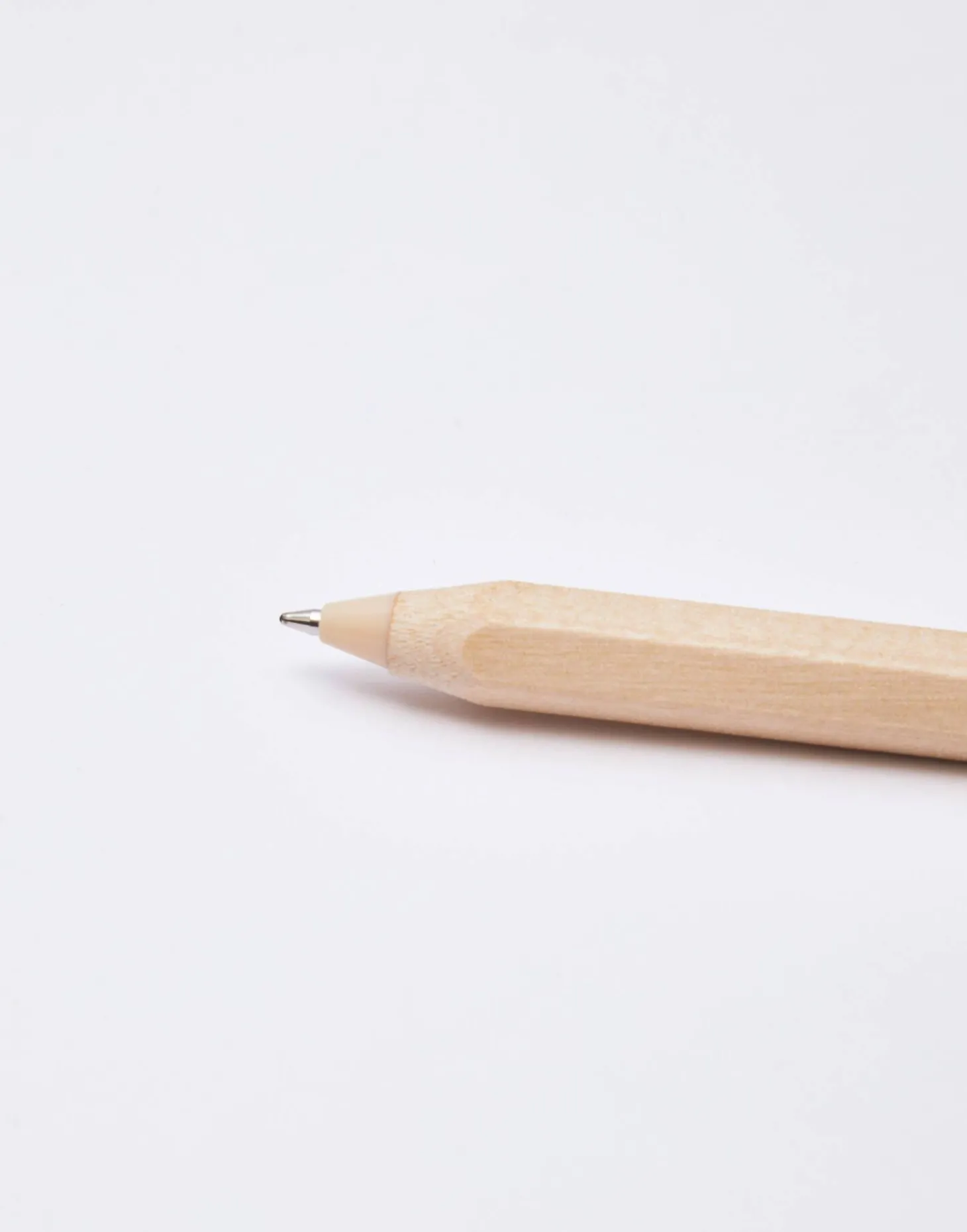 Bolígrafo de madera con goma en la parte superior.