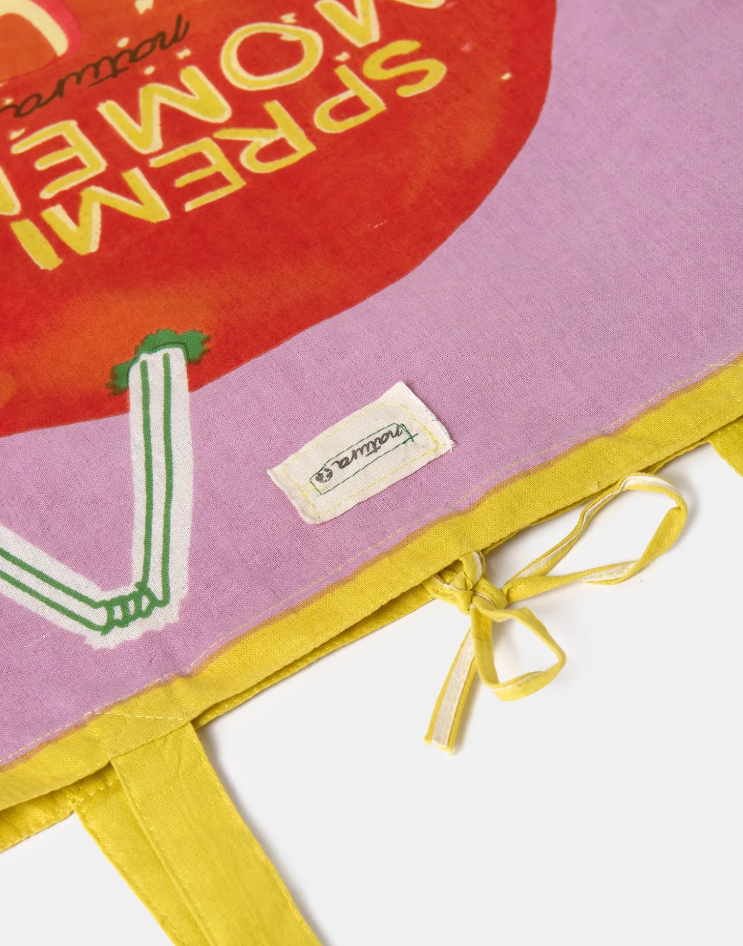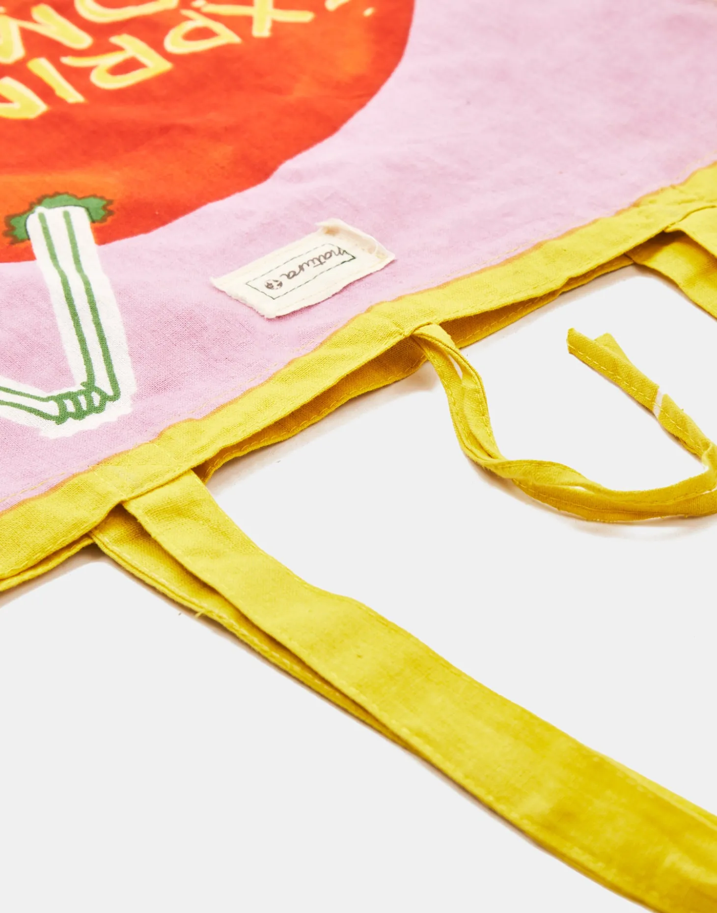 Bolsa de algodón tipo tote bag con doble asa corta y con la imagen de nuestra campaña «Exprime el momento».