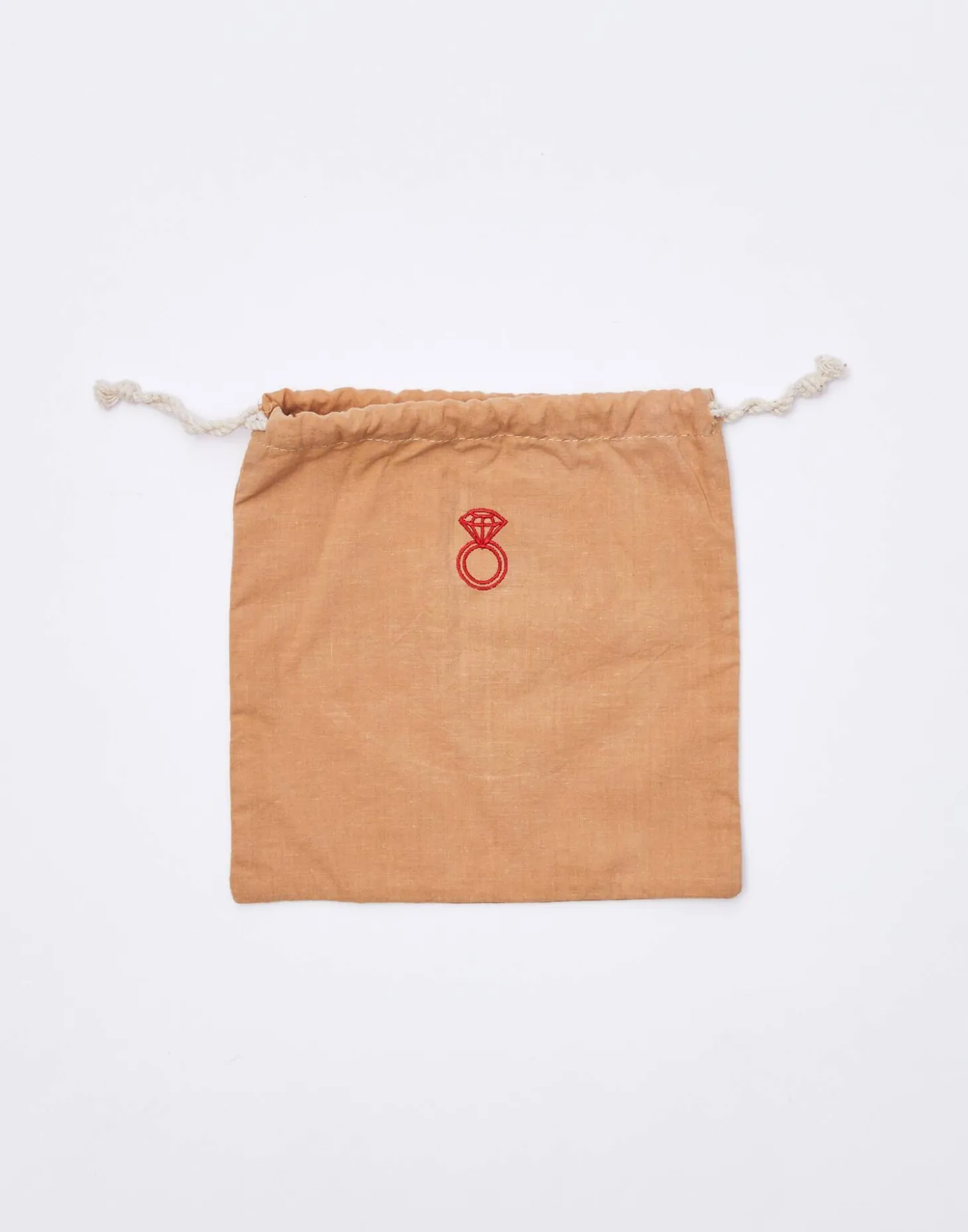Bolsa de algodón para bisutería con detalle de bordado en la parte delantera. Cierre mediante cordón ajustable.