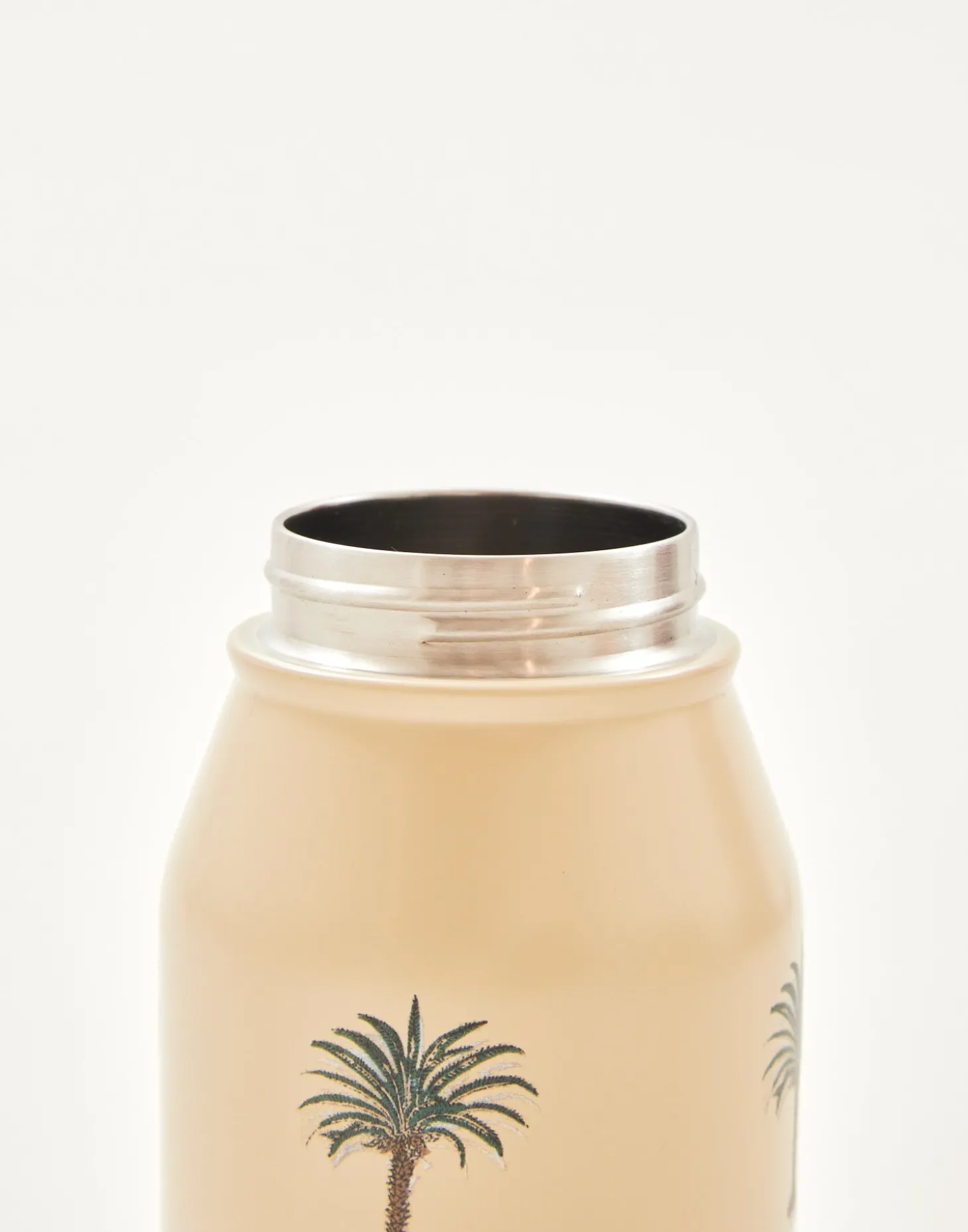 Botella reutilizable de acero inoxidable que puede utilizarse como termo. Acabada en tapón con asa.