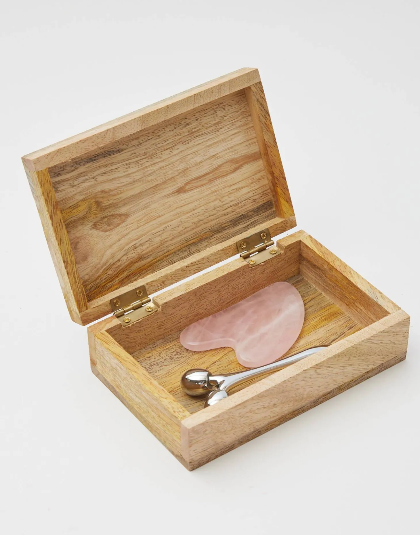 Caja de madera de un solo compartimento con ilustración de flor de loto en la tapa.
