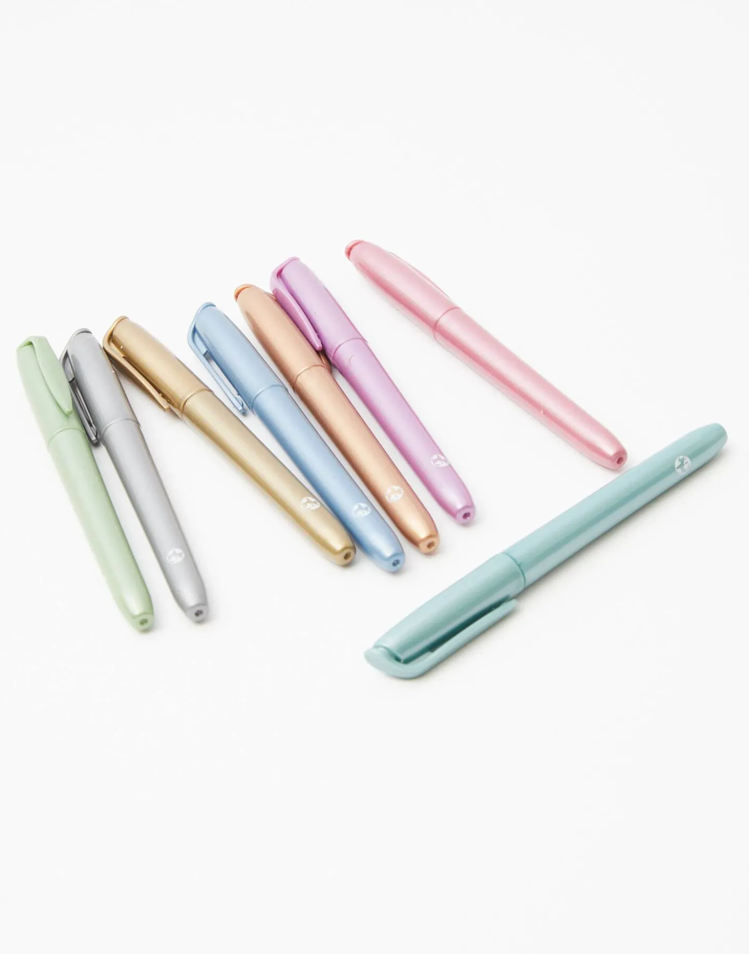 Dale brillo a todas tus creaciones junto a este pack de 8 rotuladores metalizados con punta de brocha, perfecto para detalles.