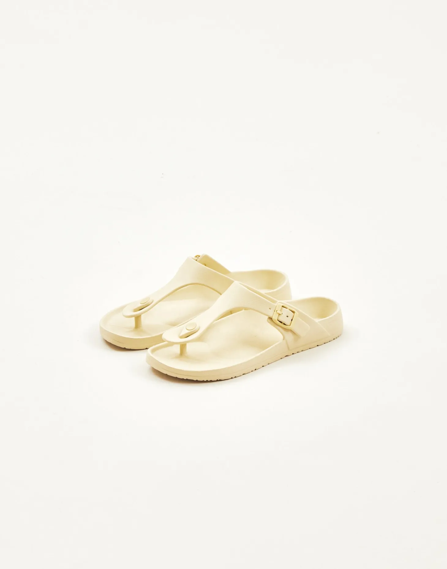 Sandalia de dedo ergonómica hecha en goma con ajuste mediante tira con hebilla.