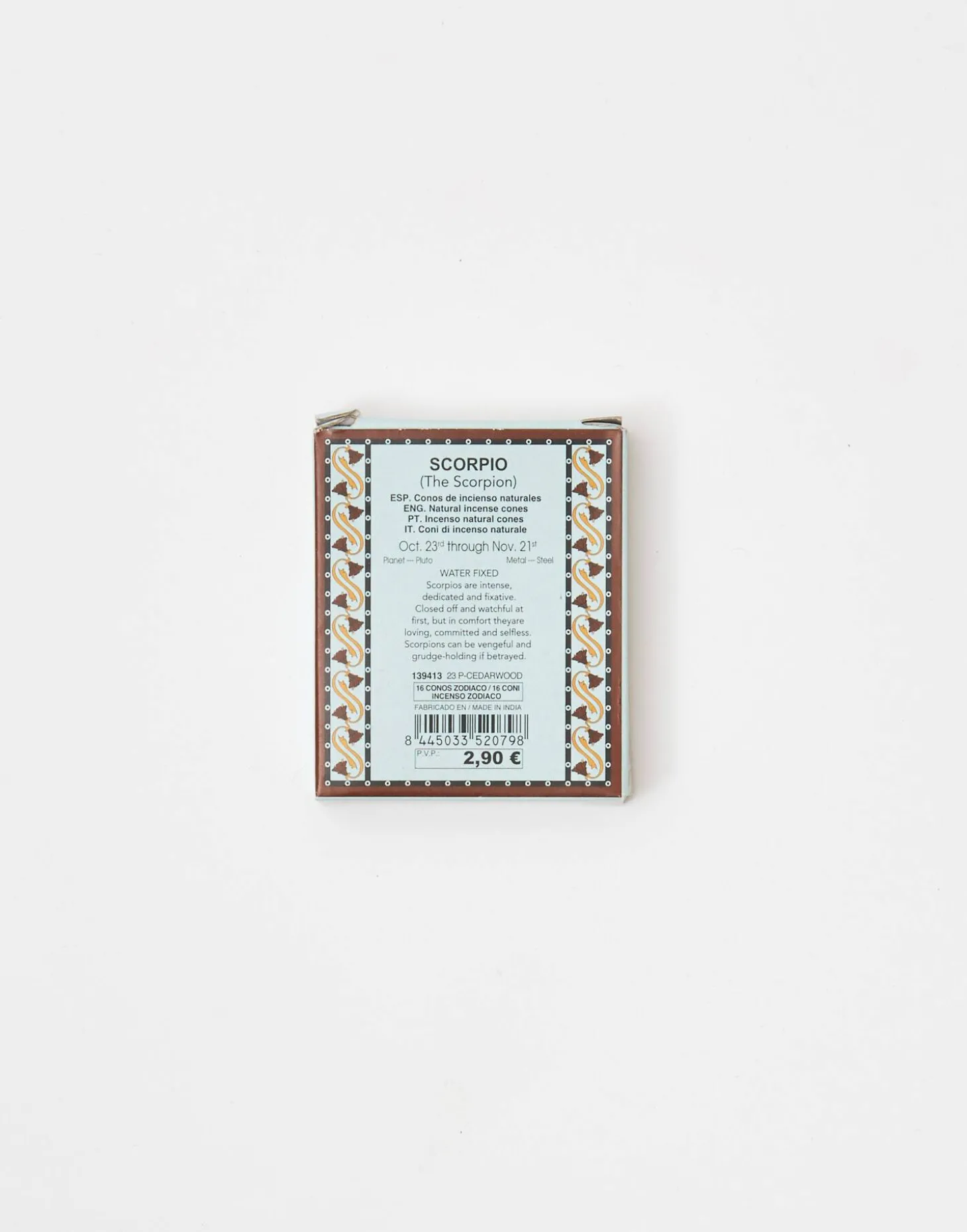 Este incienso hecho artesanalmente en la India está basado en los signos zodiacales y se elabora a partir de raíces aromáticas, resinas, hierbas, aceites florales naturales y polvo de madera. Esta formulación milenaria produce un aroma místico ideal para orar, reducir los malos olores y crear un ambiente fresco, agradable y tranquilo. Contiene 16 conos.