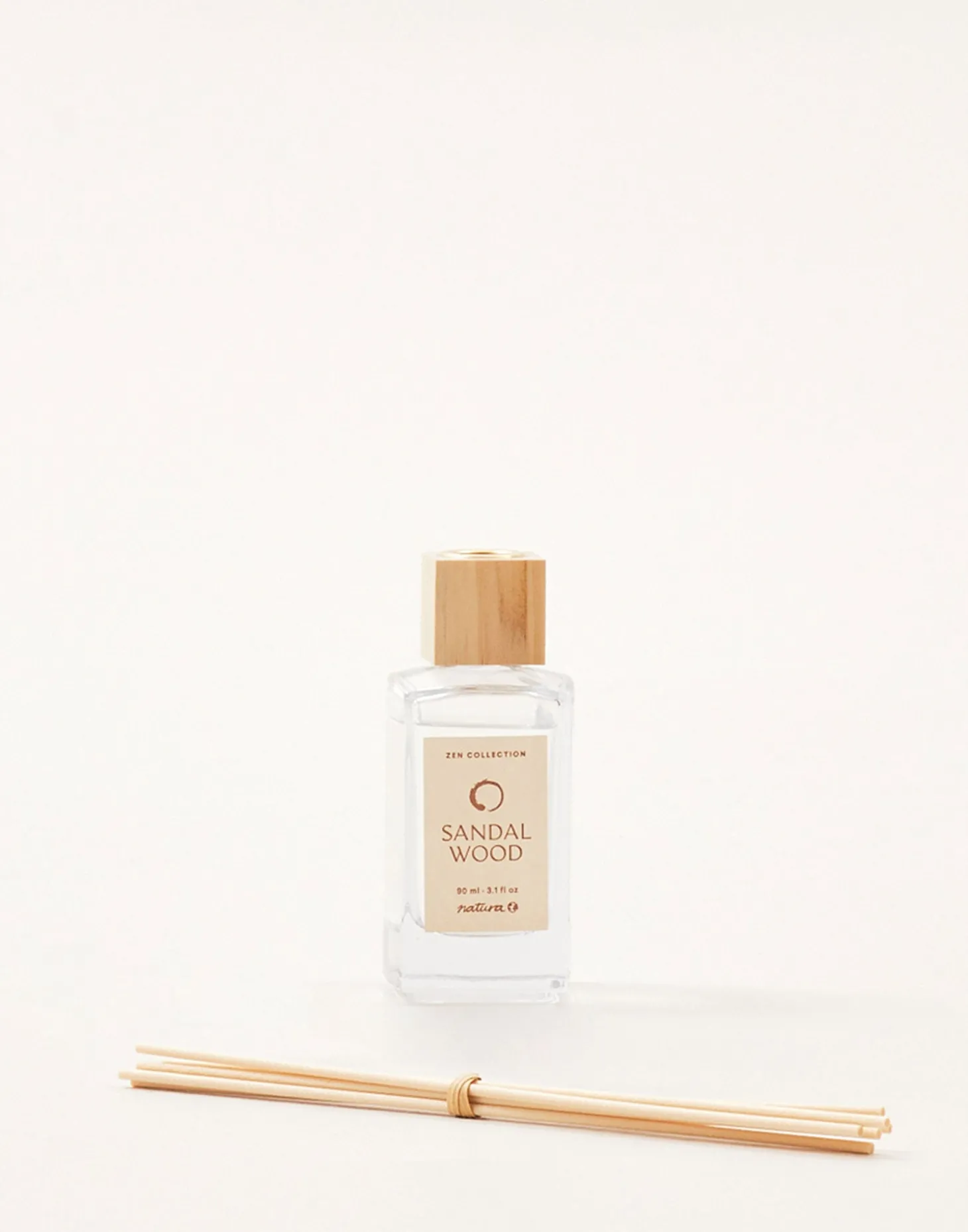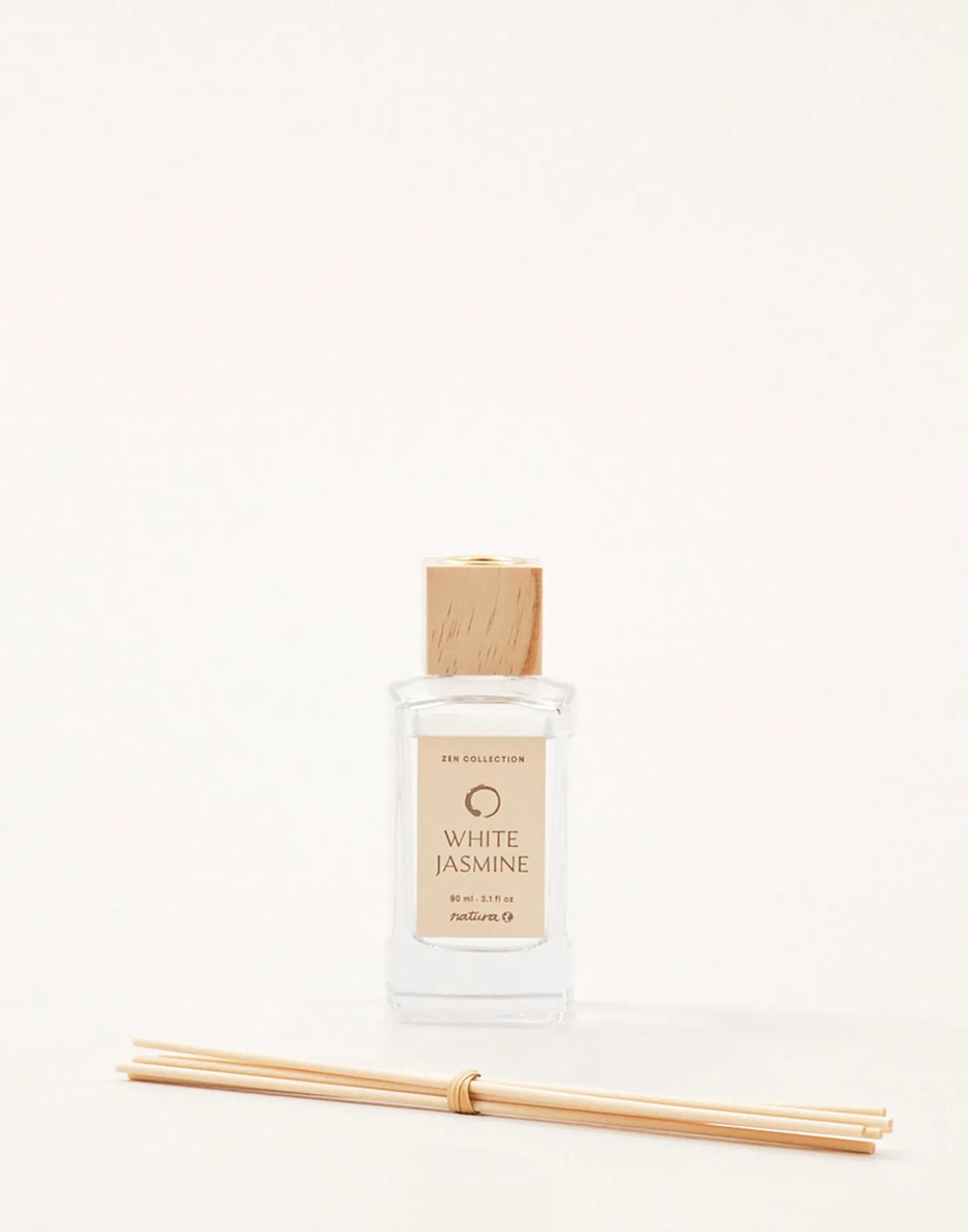 Ambientador de varillas en envase de cristal con varillas de ratán.