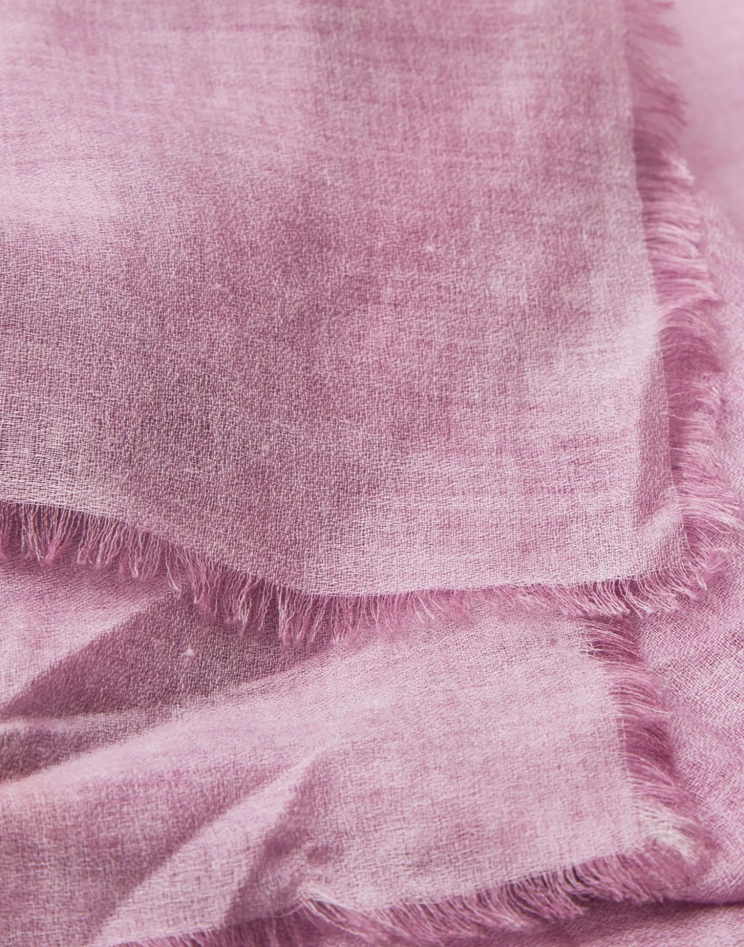 Pañuelo liso en mezcla de algodón y viscosa con terminaciones deshilachadas.