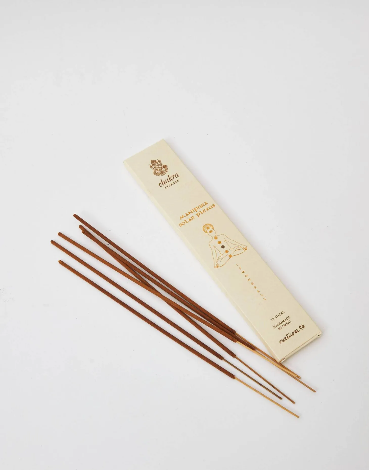 Colección de inciensos con 15 sticks, hechos a mano en Nepal. Cada chakra corresponde a un aroma determinado: