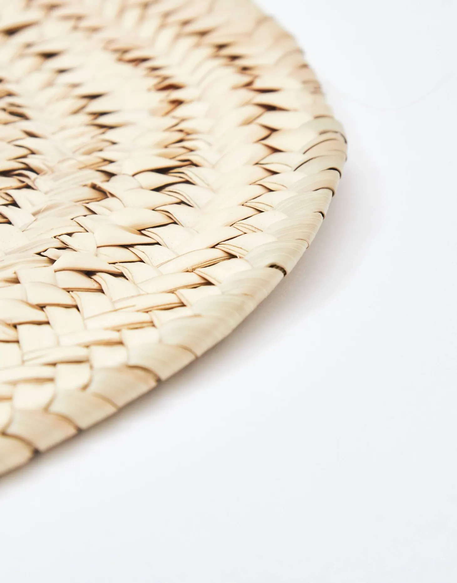 Mantel individual redondo de paja trenzada.