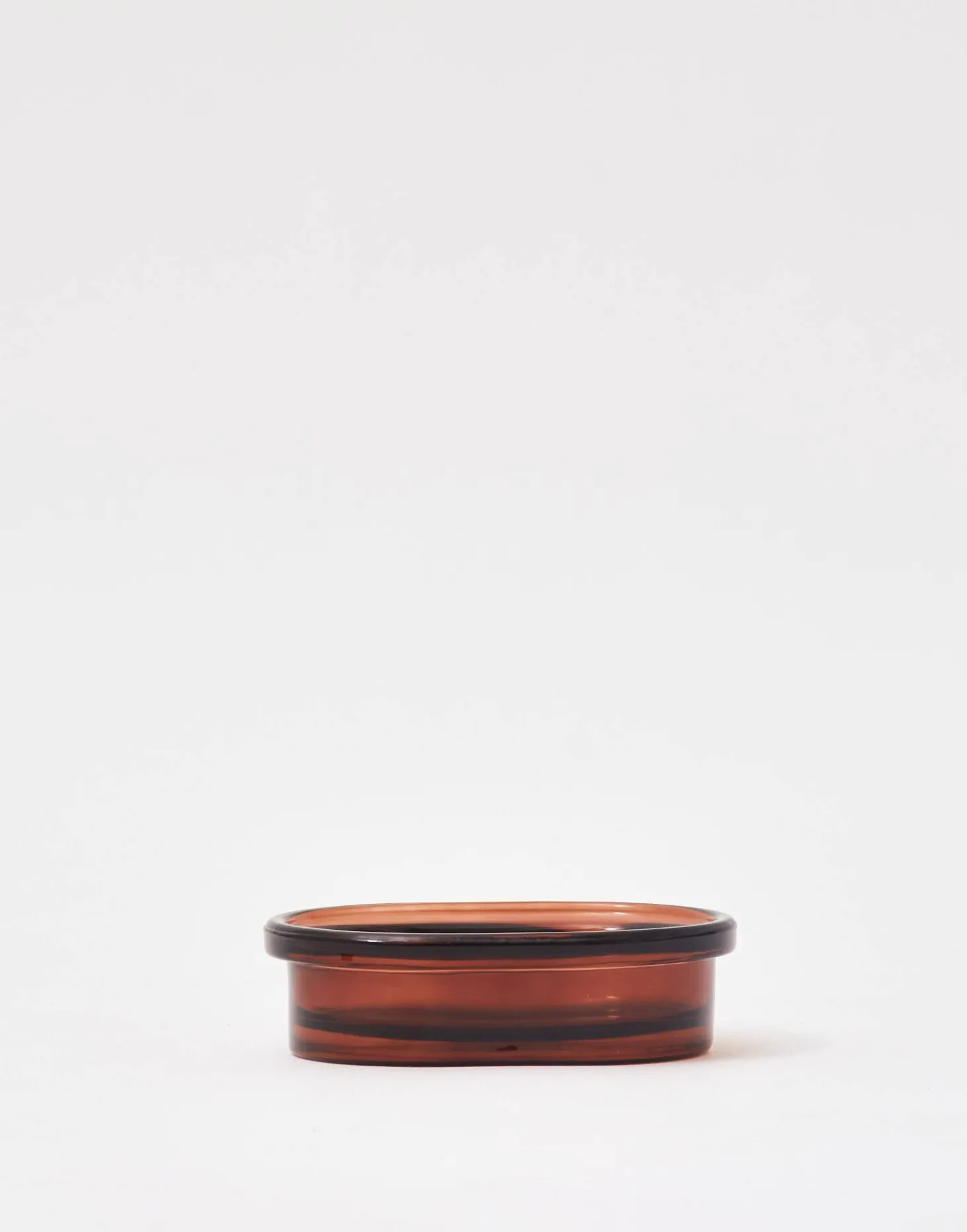 Jabonera de cristal para tus pastillas de jabón. Completa el conjunto de baño de bambú con el dispensador de jabón y el portacepillos.