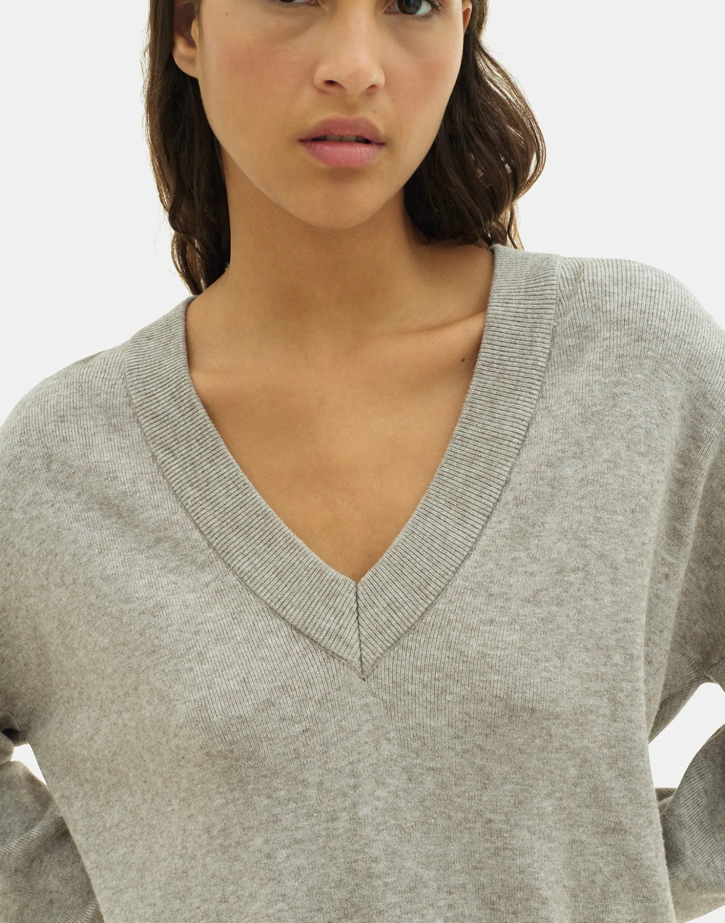 Jersey de punto con cuello de pico y acabados en rib.