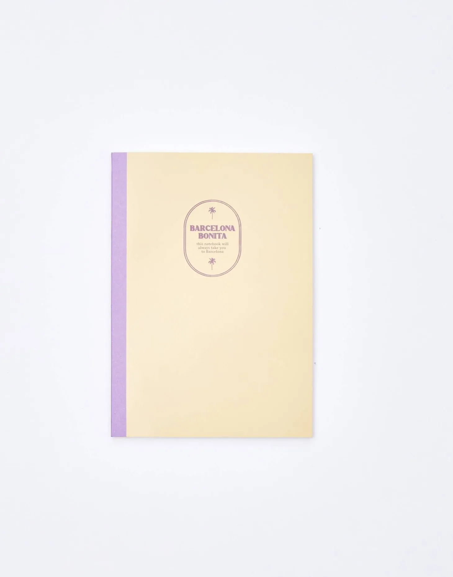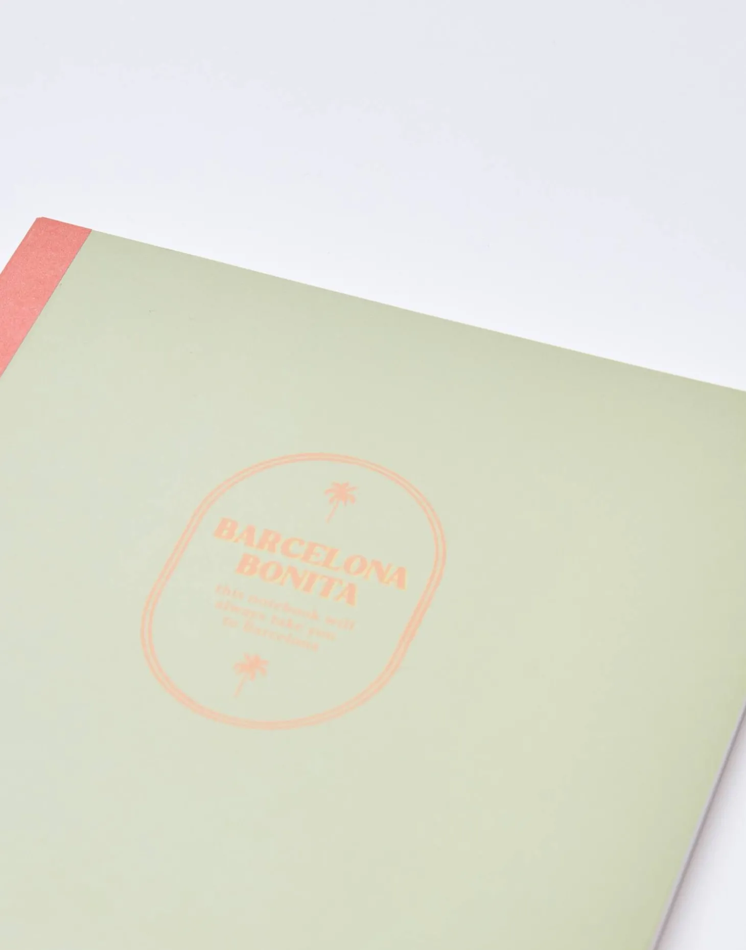 Libreta de tapa blanda con mensaje «Barcelona Bonita». Interior con 64 páginas lisas.