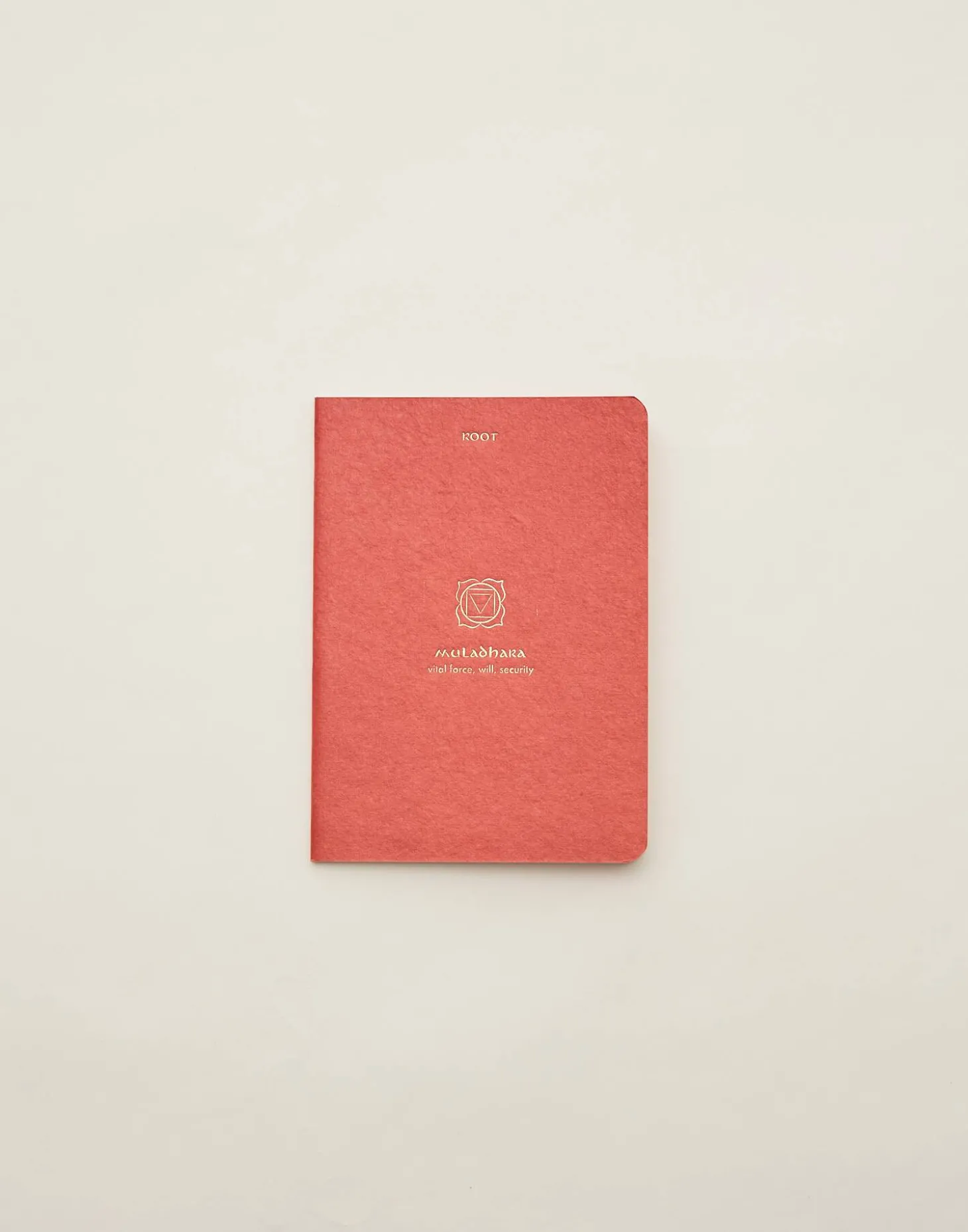Cuaderno de tapa blanda con hojas en blanco y dibujo de chakra en la portada.