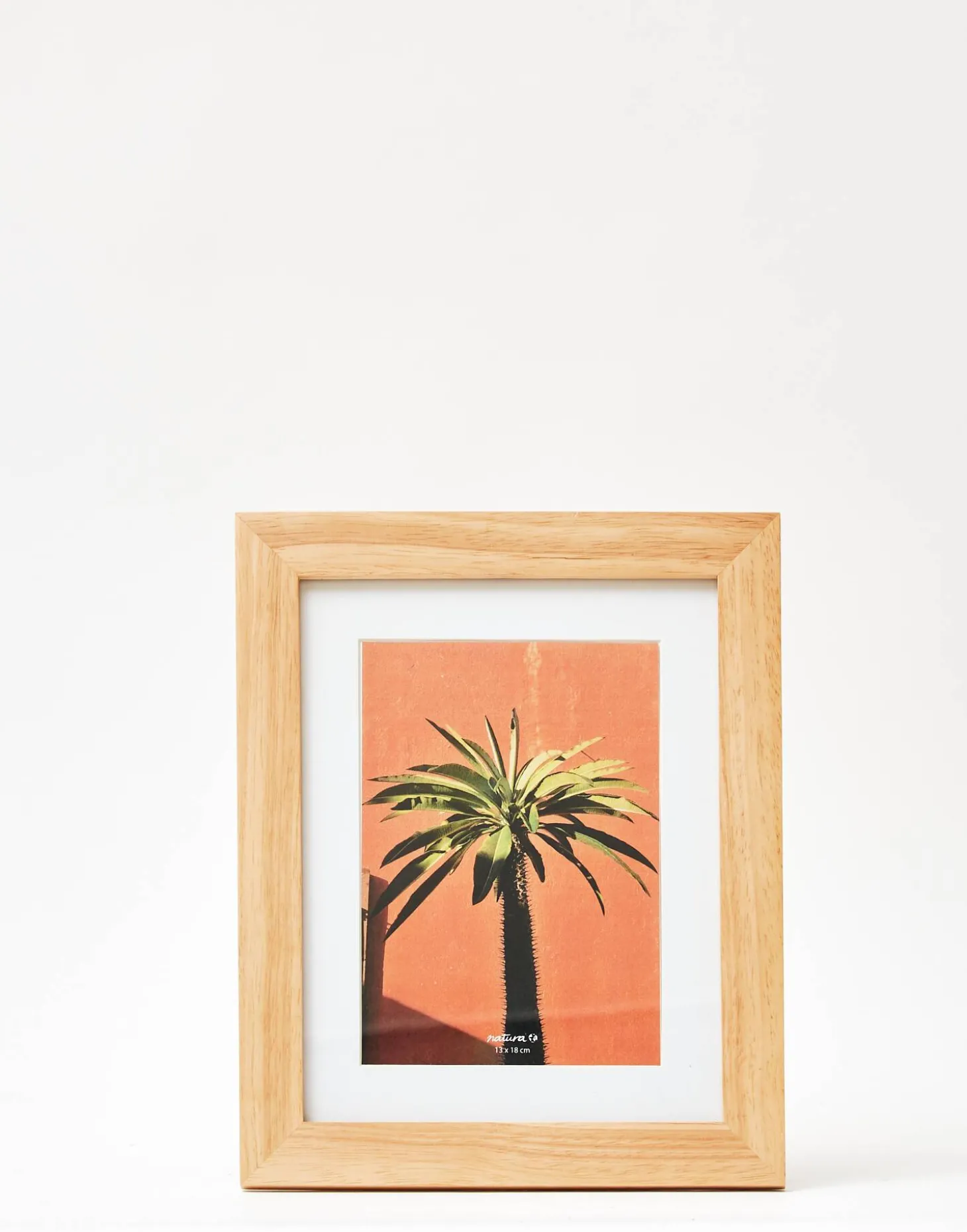 Marco de madera con pie en la parte trasera y pieza para colgar. Para fotos de 13×18 cm.