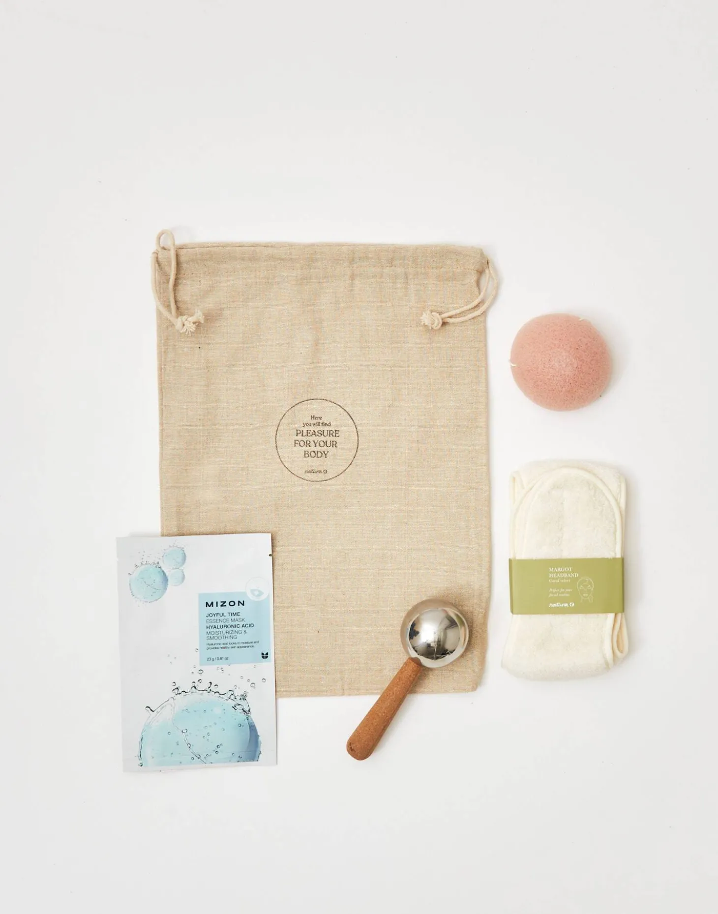 – Banda de pelo: un básico durante tu rutina facial, ayuda a despejar el pelo de la cara y poder trabajar de manera libre sobre la zona de la frente y las sienes.