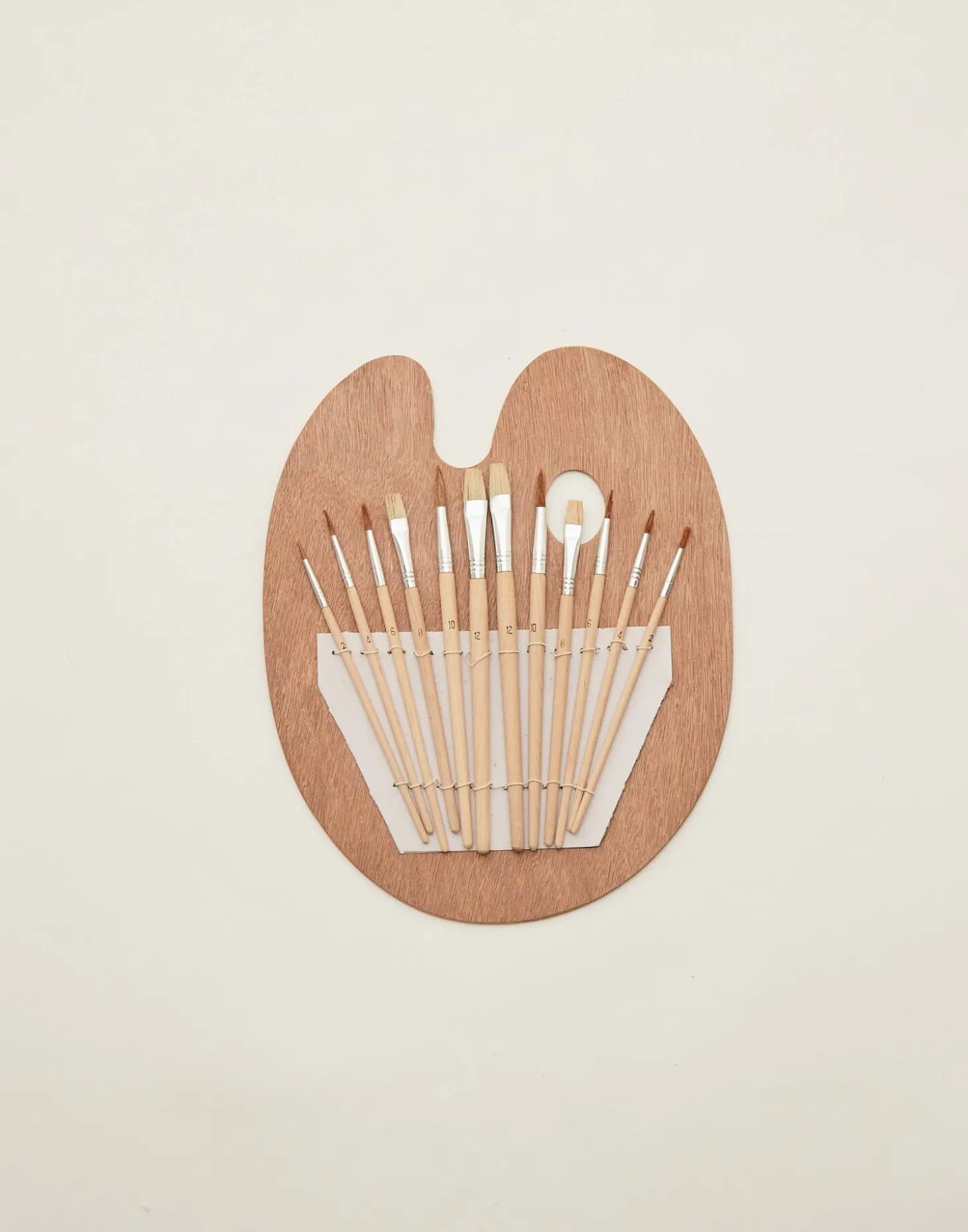 Da rienda suelta a tu mente creativa o pasa un rato divertido con tus hijos creando vuestras propias obras de arte con este set pintura compuesto por una paleta de madera y 12 pinceles.