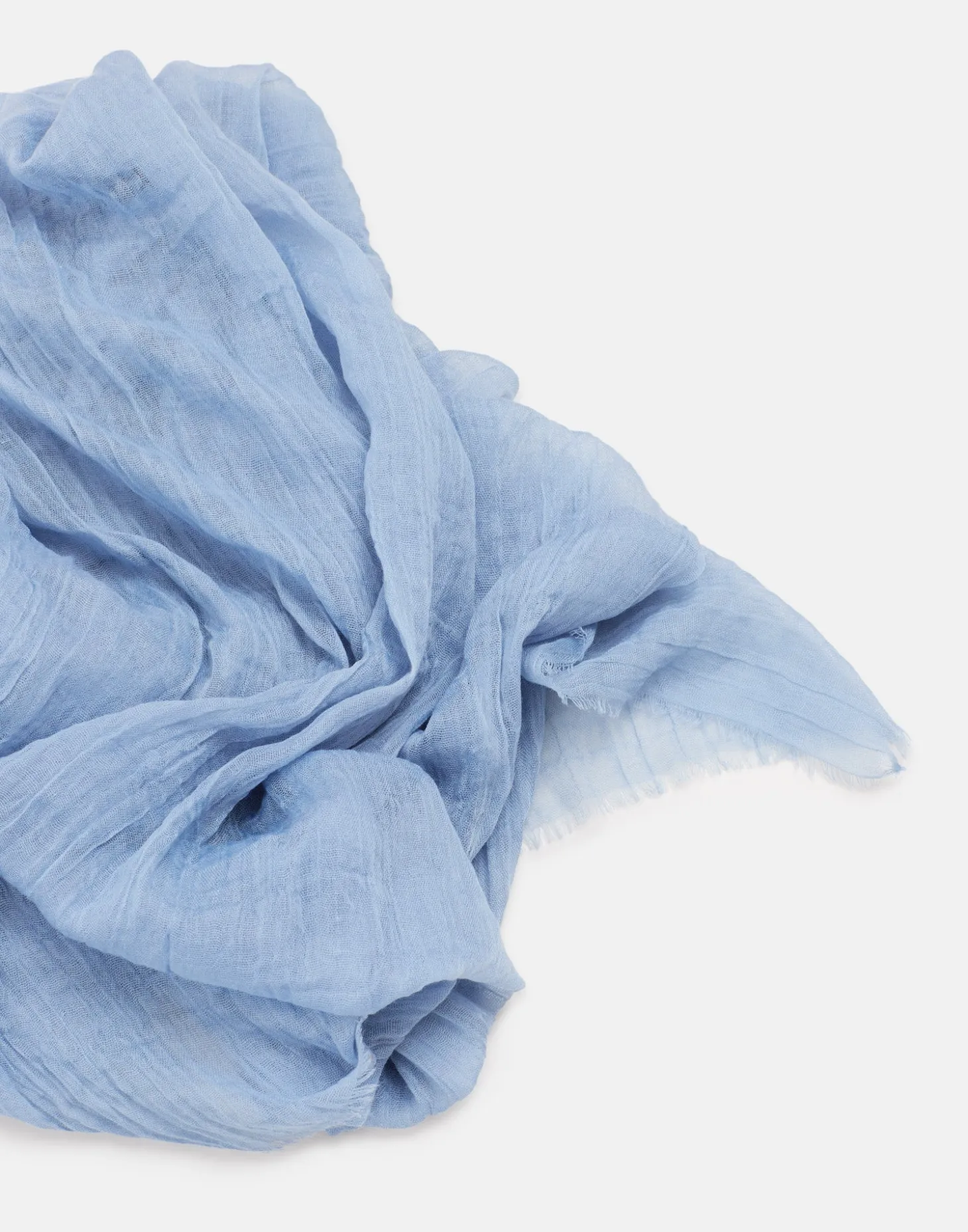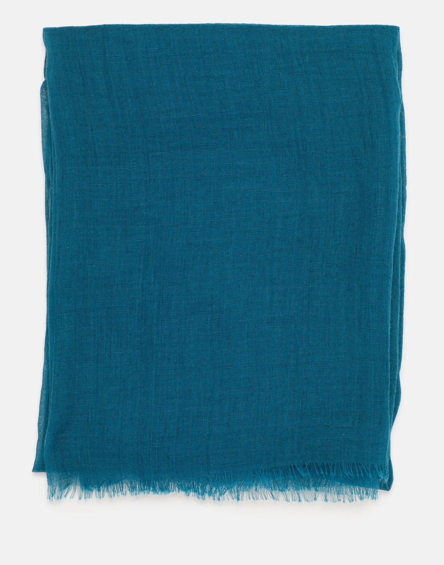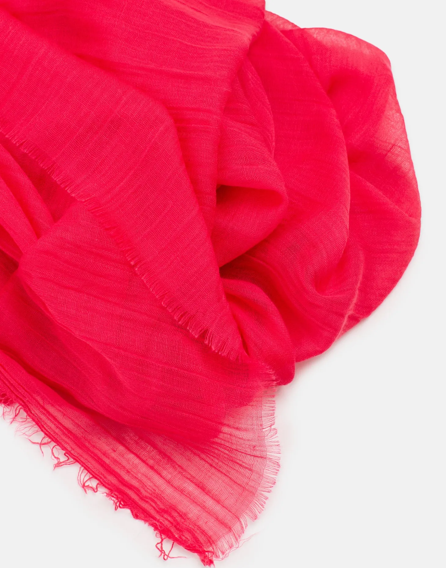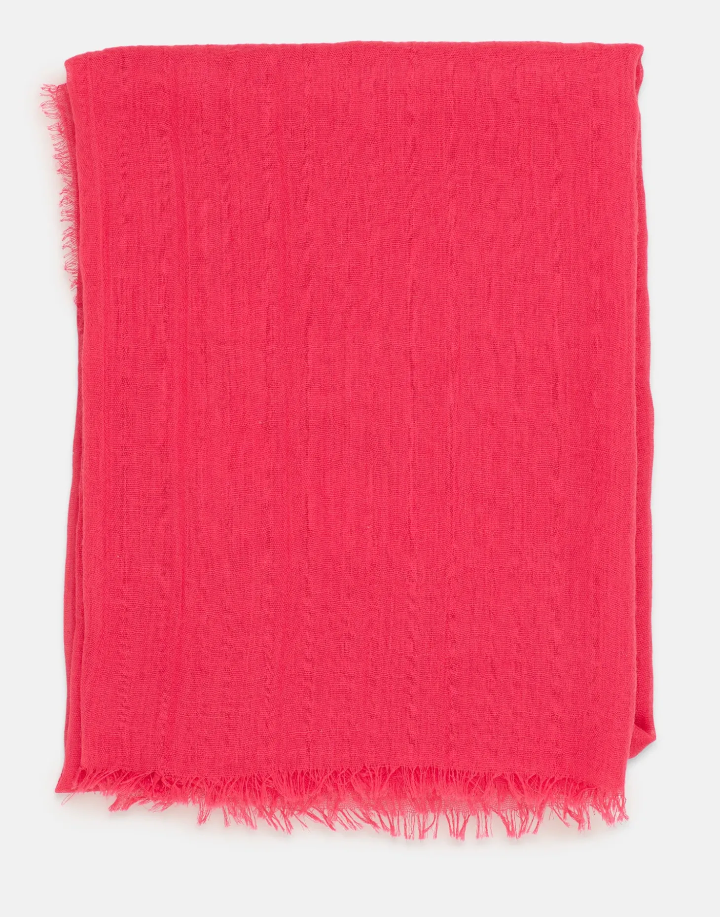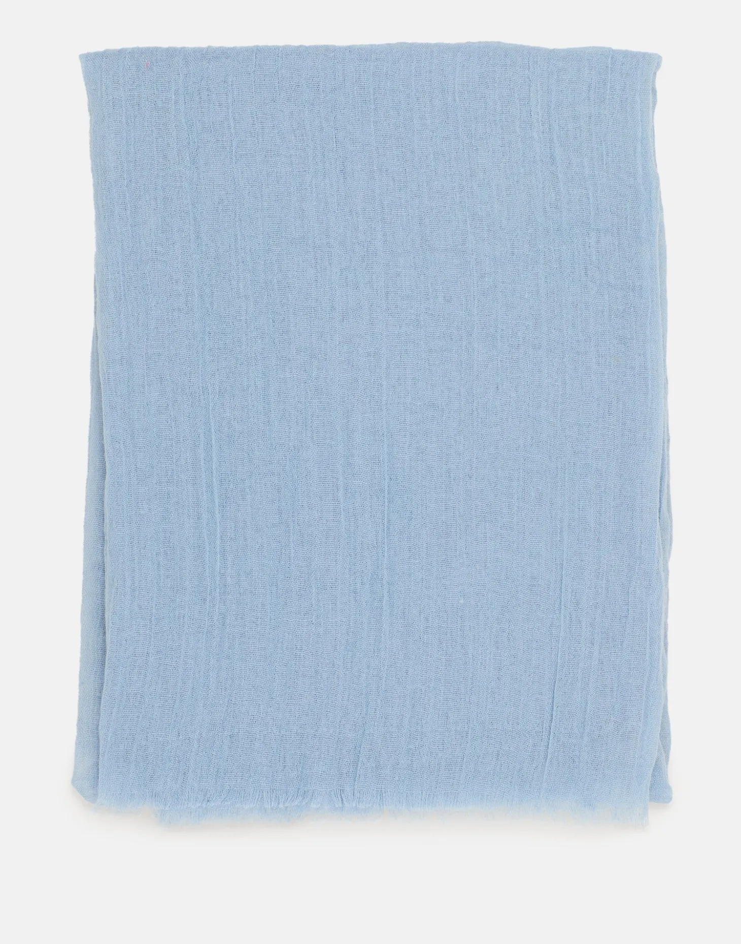 Fular liso con detalle de tejido efecto arrugado y terminaciones deshilachadas.