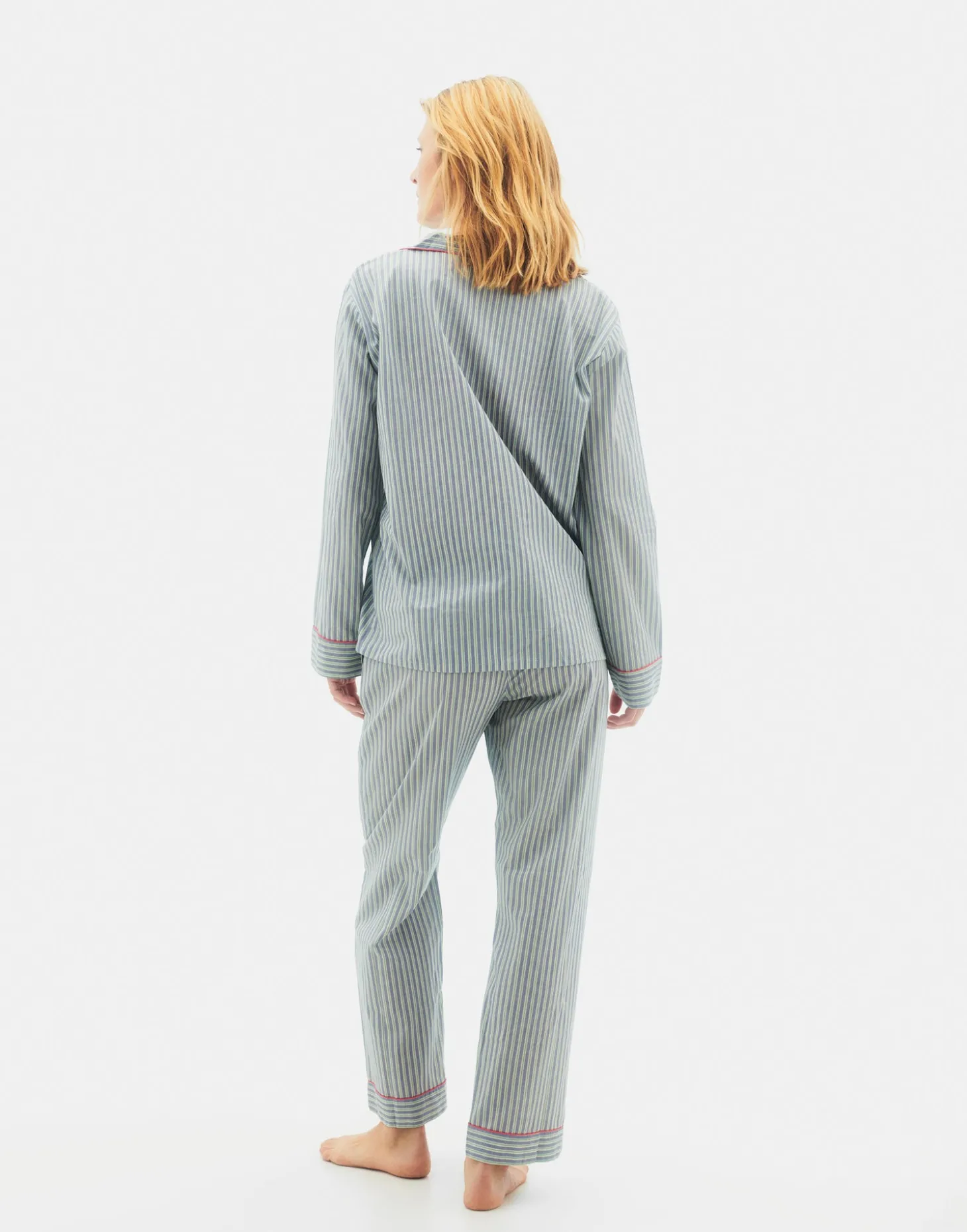Set de pijama unisex compuesto por dos piezas: camisa de manga larga y pantalón largo.