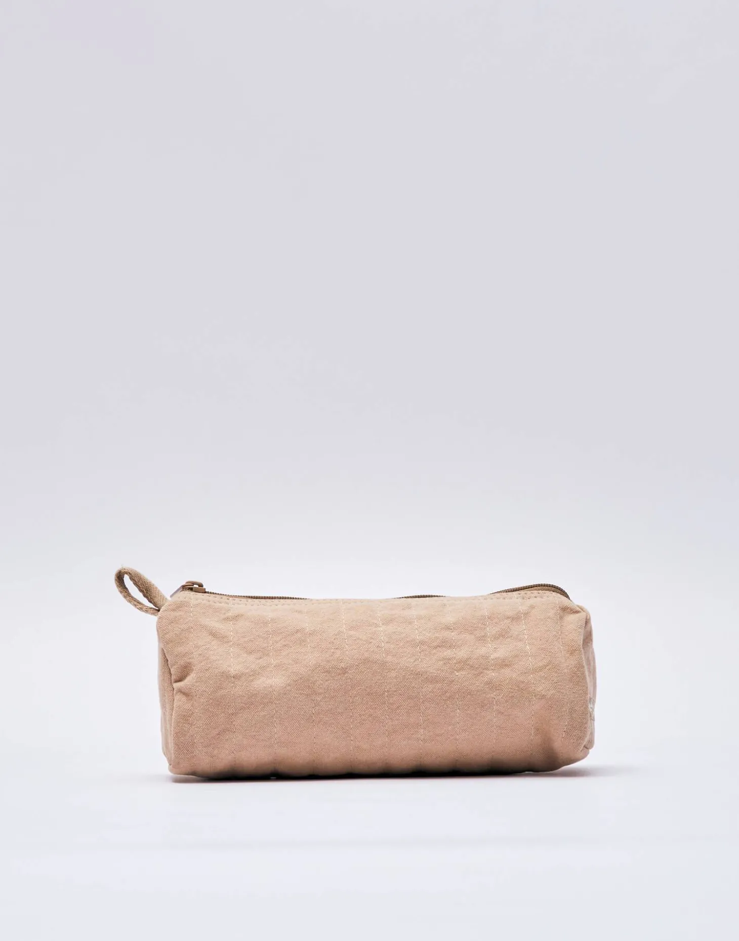 Estuche 100% algodón lavado. Único compartimento con cierre mediante cremallera.