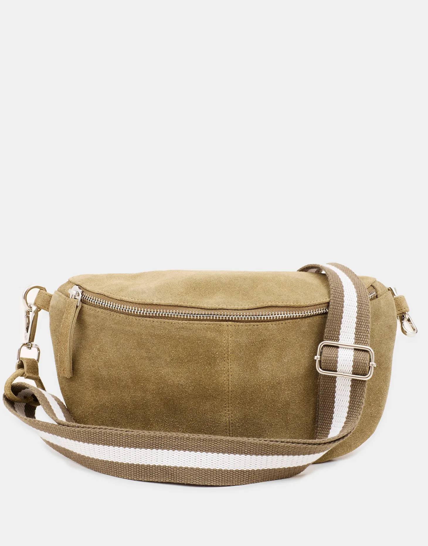 Riñonera de piel con cierre en cremallera y correa ajustable y extraíble.