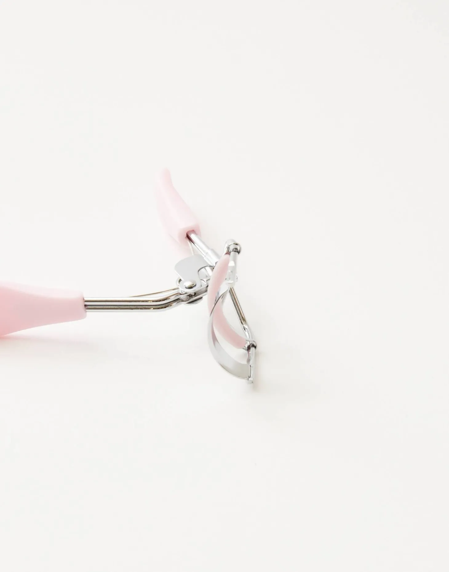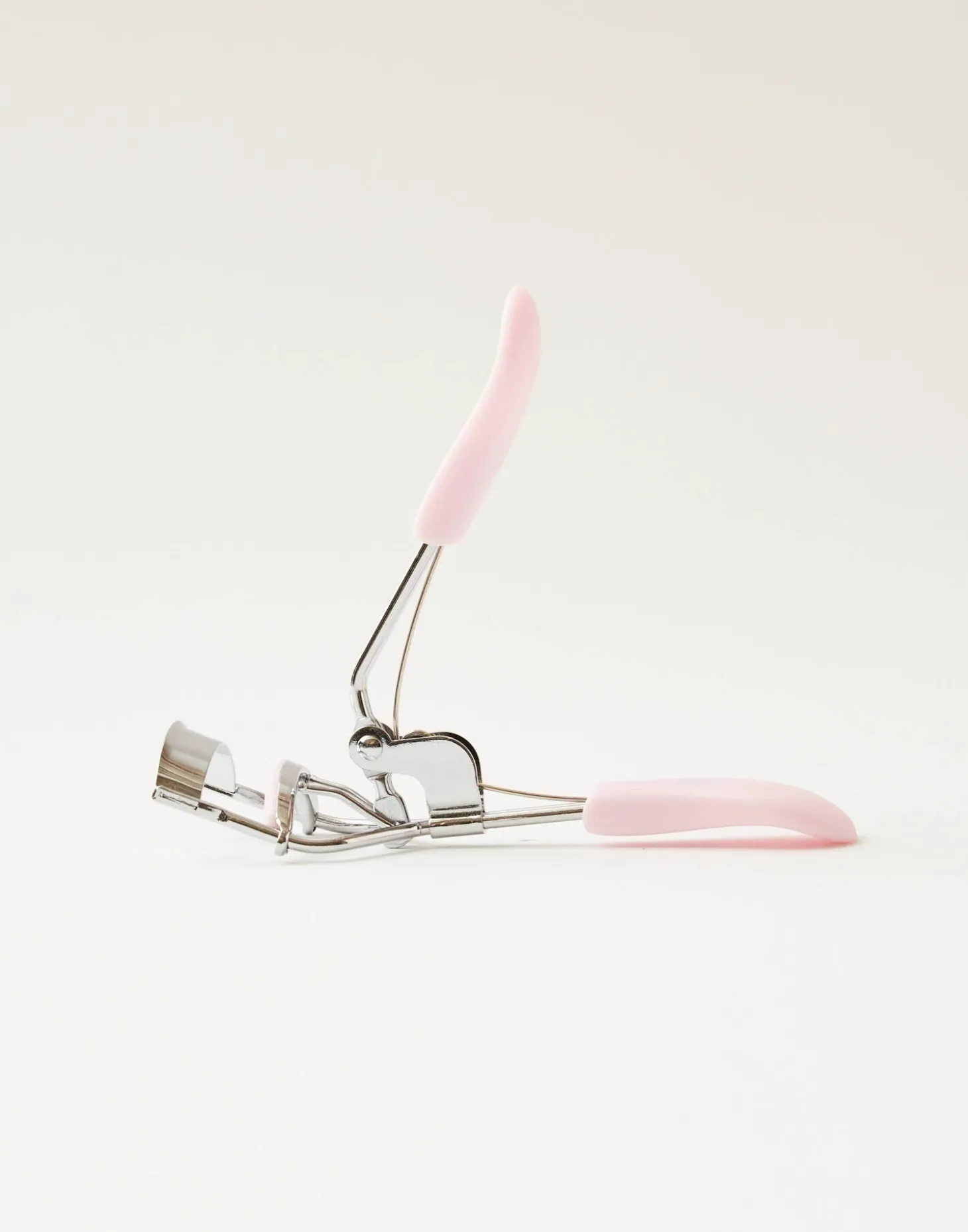 Rizador de pestañas con mango y almohadillas de goma suave. Viene en una bolsita para guardarlo mientras no se usa.