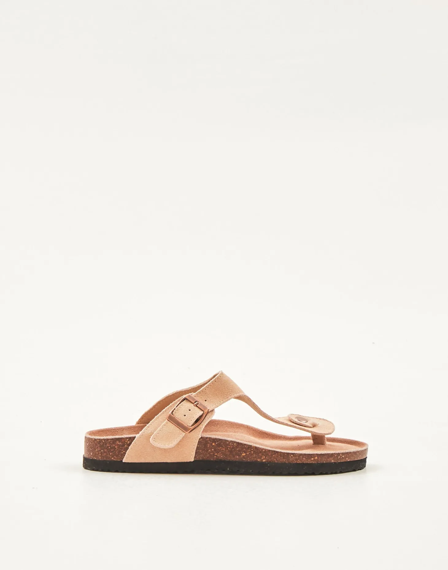 Sandalia de dedo ergonómica de piel. Ancho ajustable mediante hebilla.